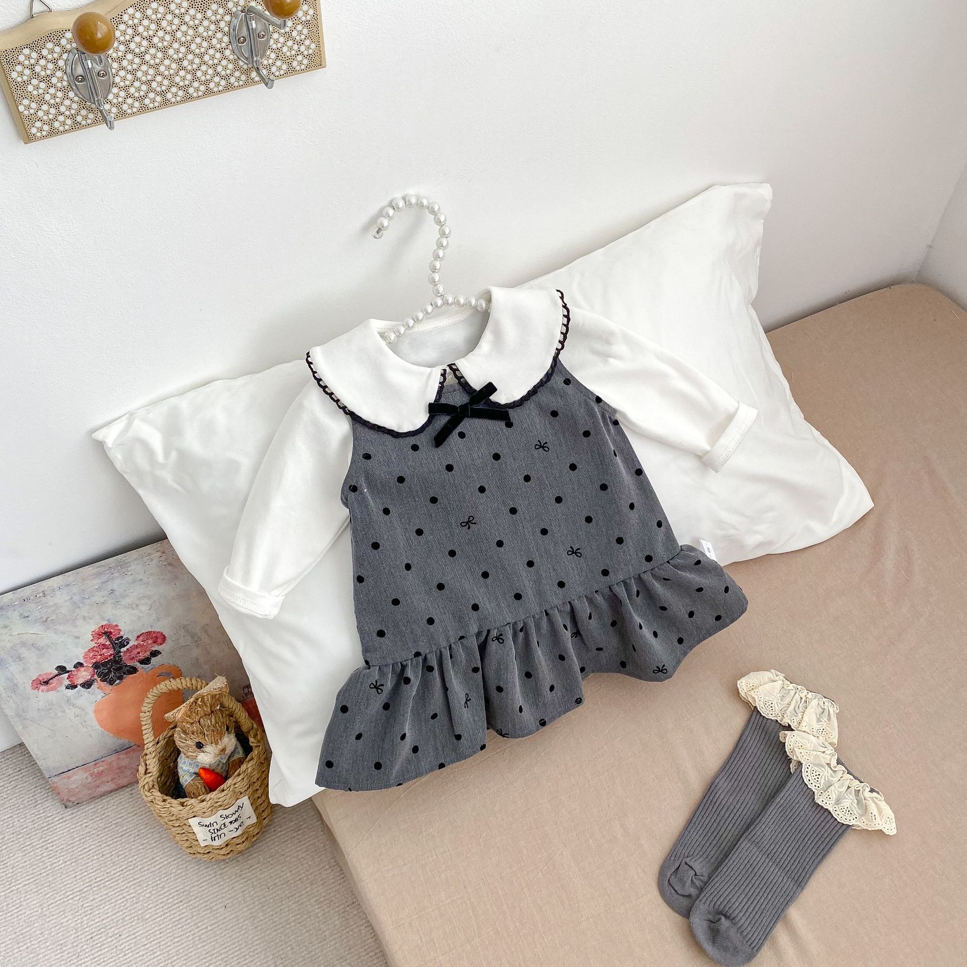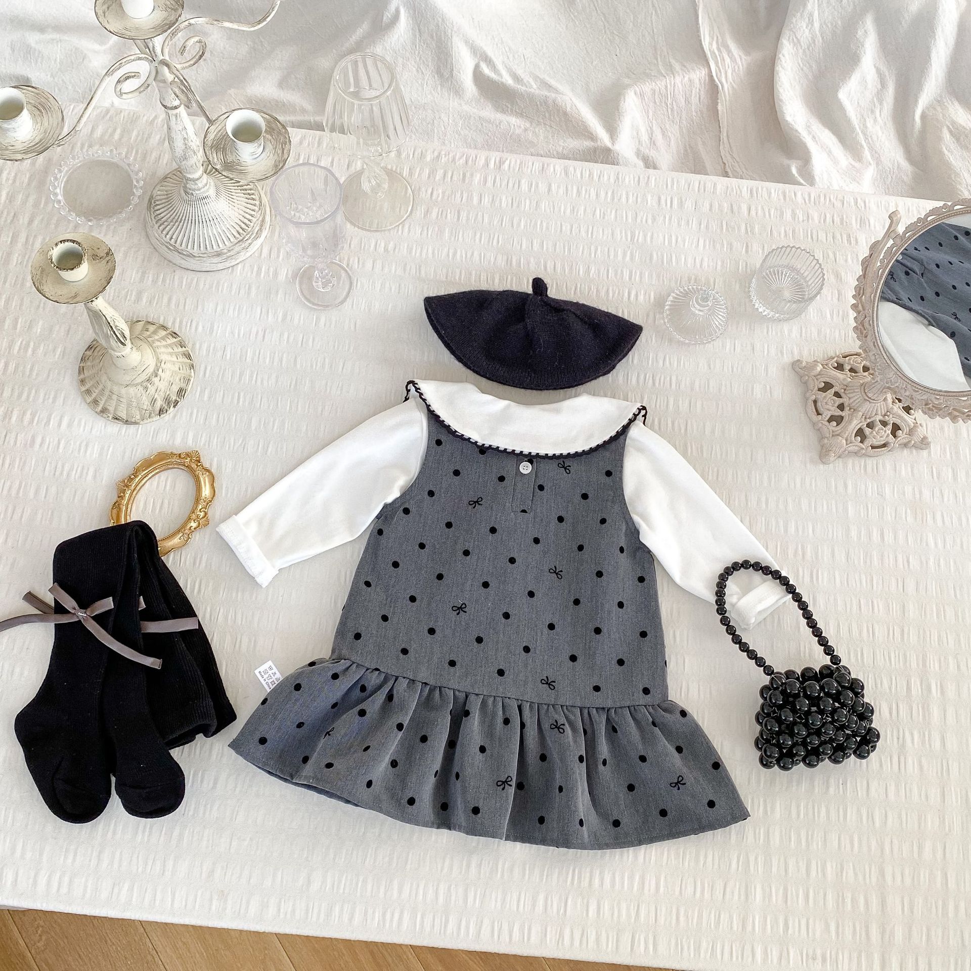 봄 새로운 아기 소녀 폴카 도트 조끼 원피스 스타일리스트 활 러플 원피스 베이스 셔츠 투피스 세트