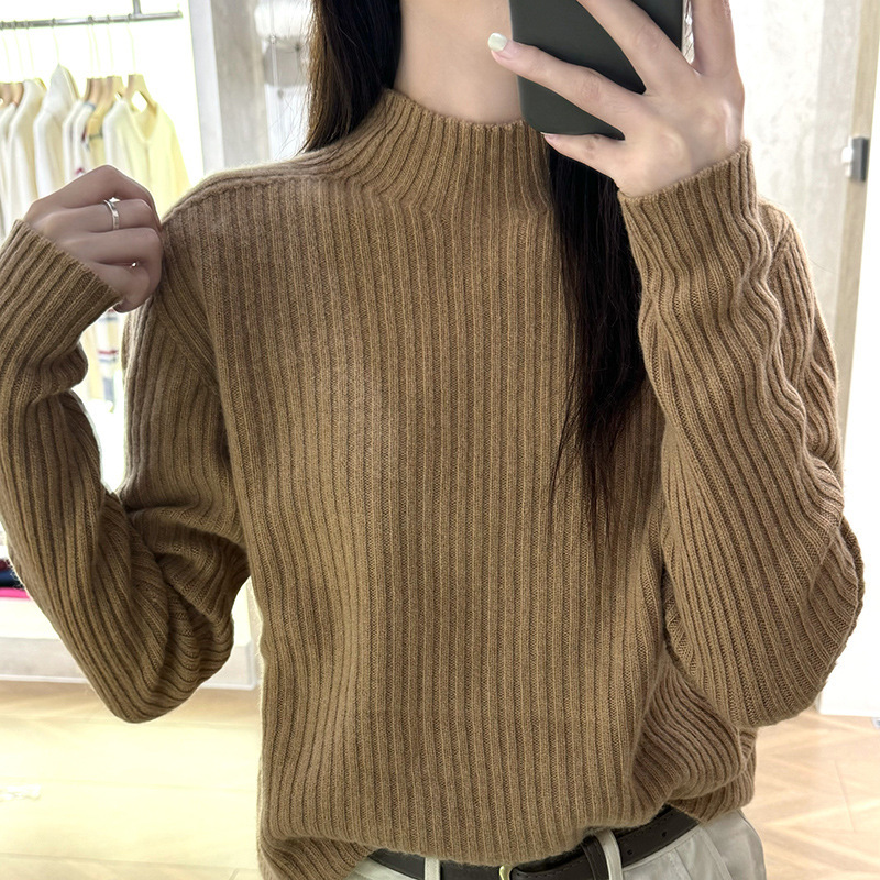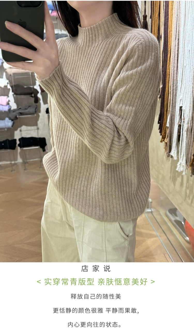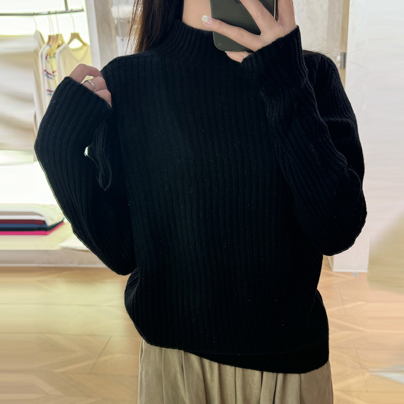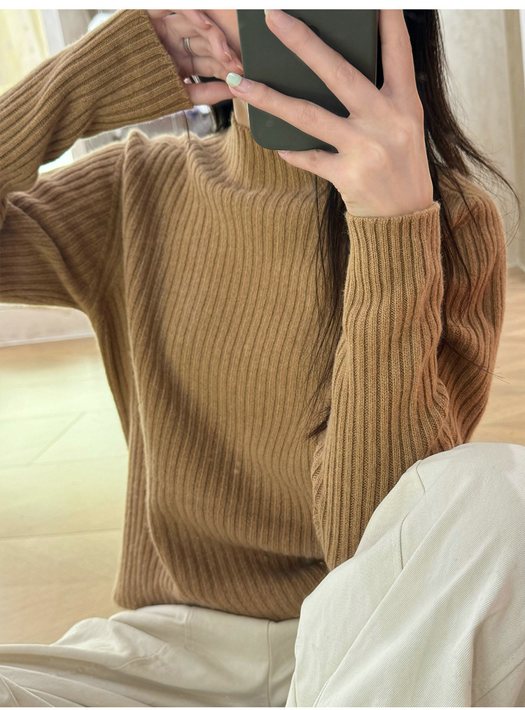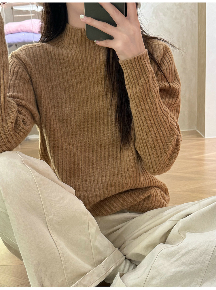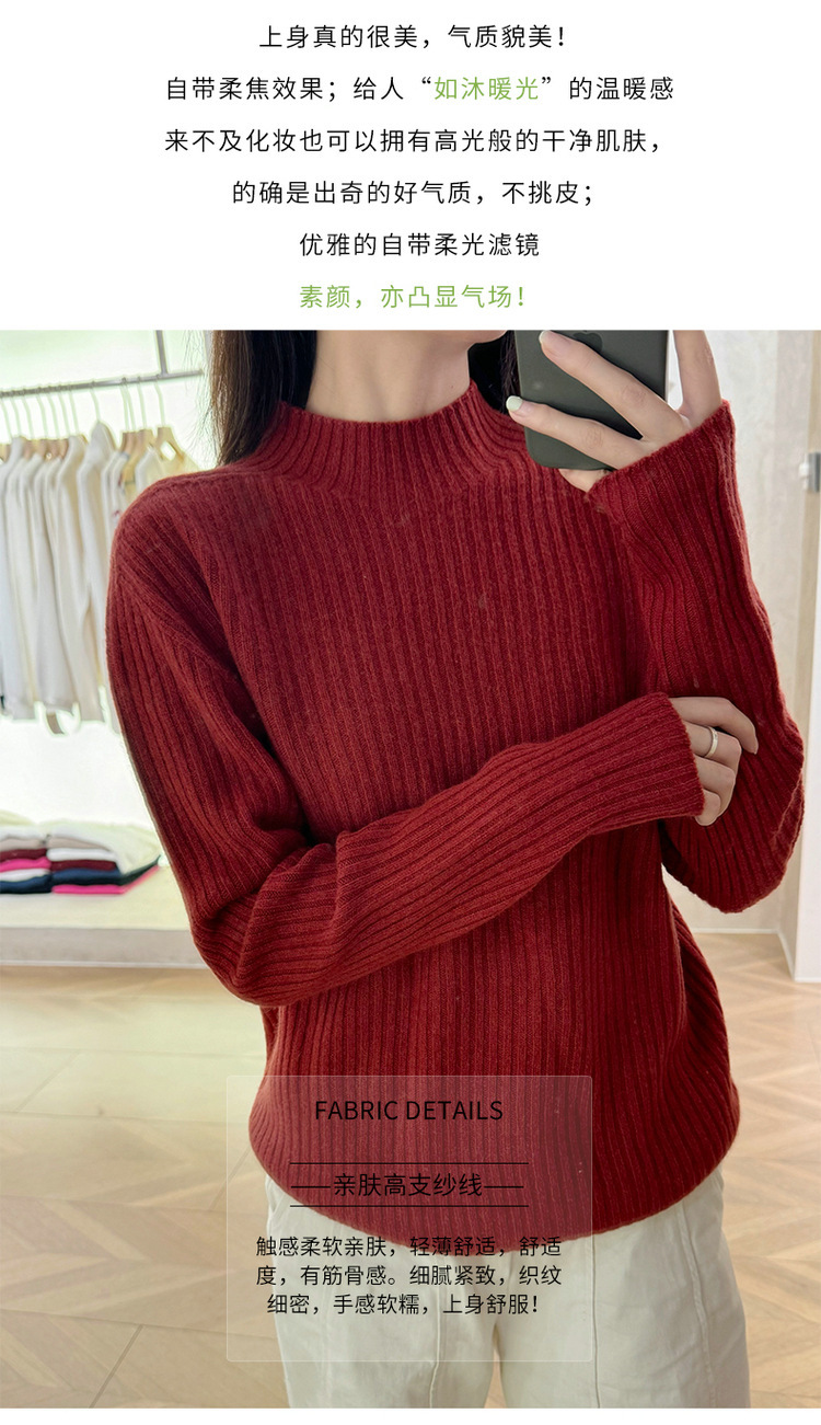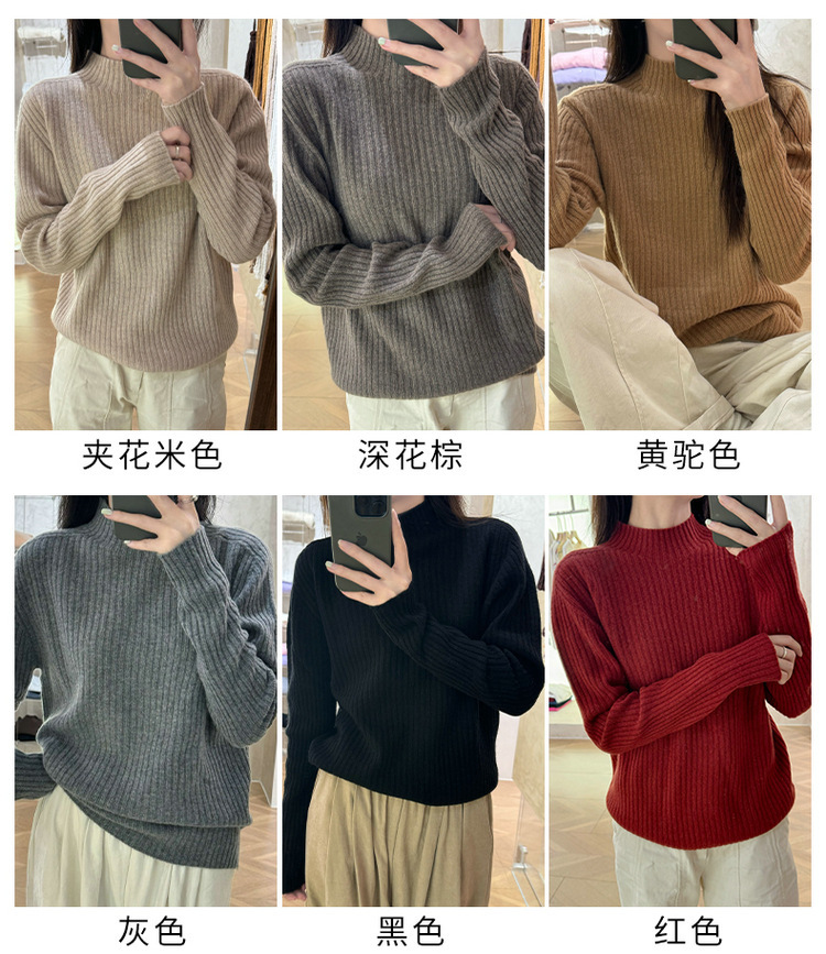 퍼스트 라인 원활한 패션 핏 캐시미어 스웨터 세미 하이 칼라 베이스 셔츠 여성의 가을 및 겨울 솔리드 컬러 베이스 내부 니트 스웨터스토어 가기