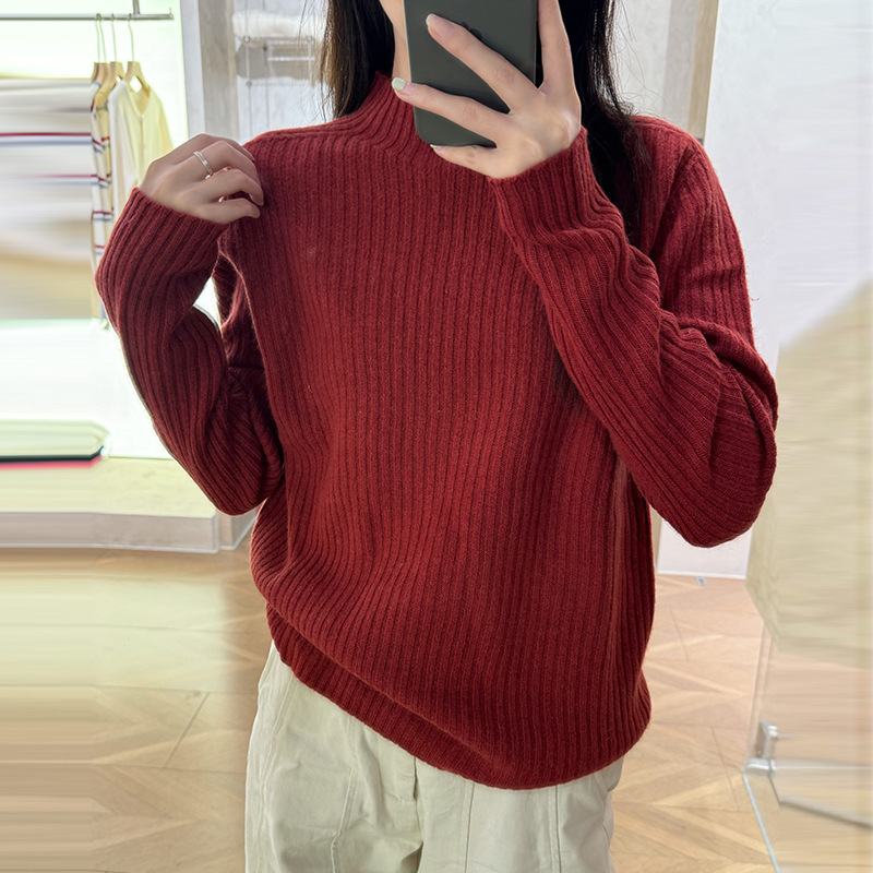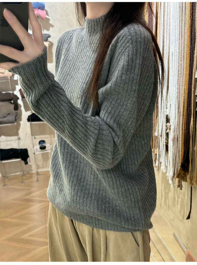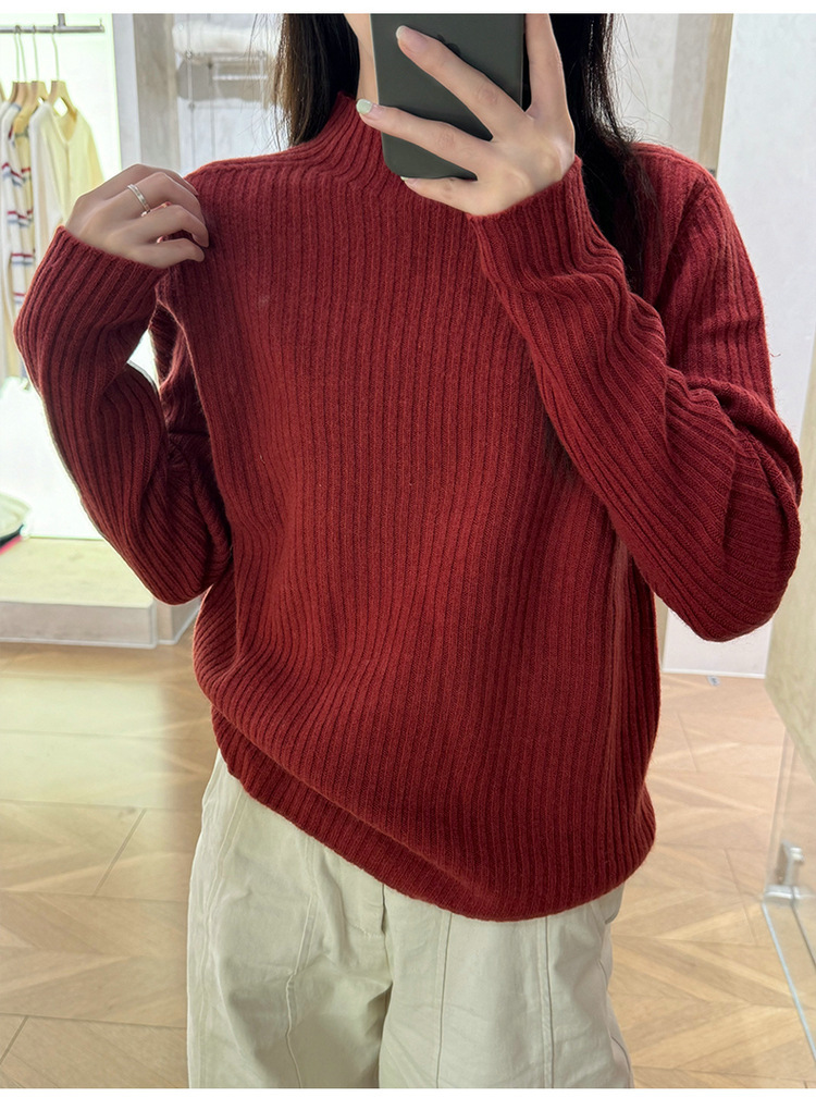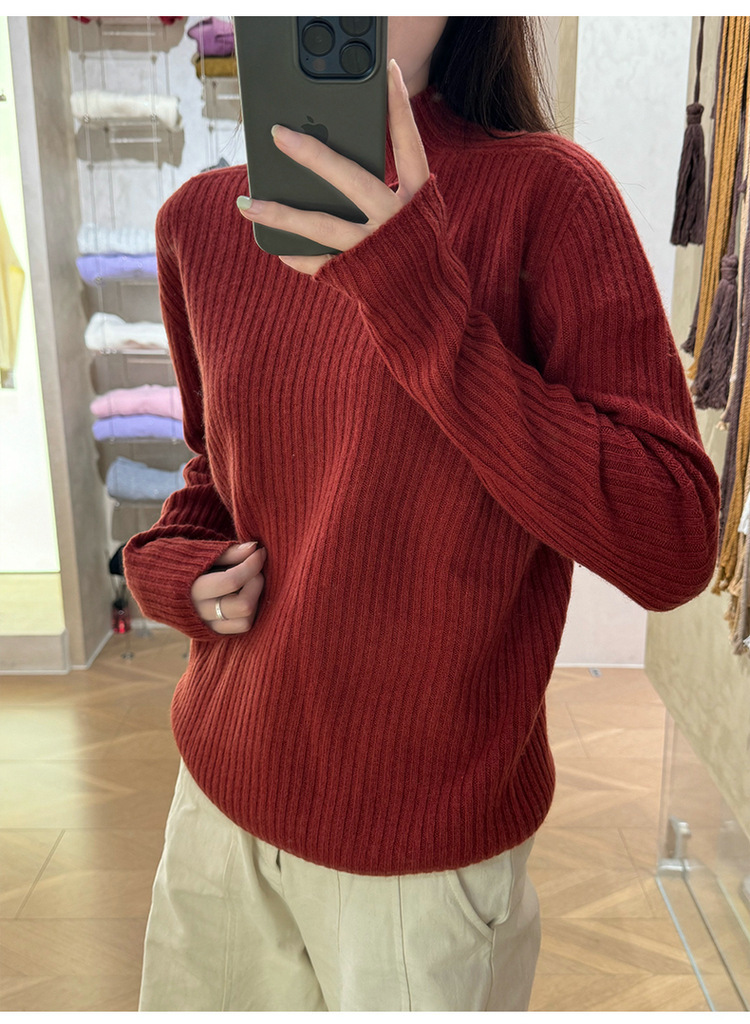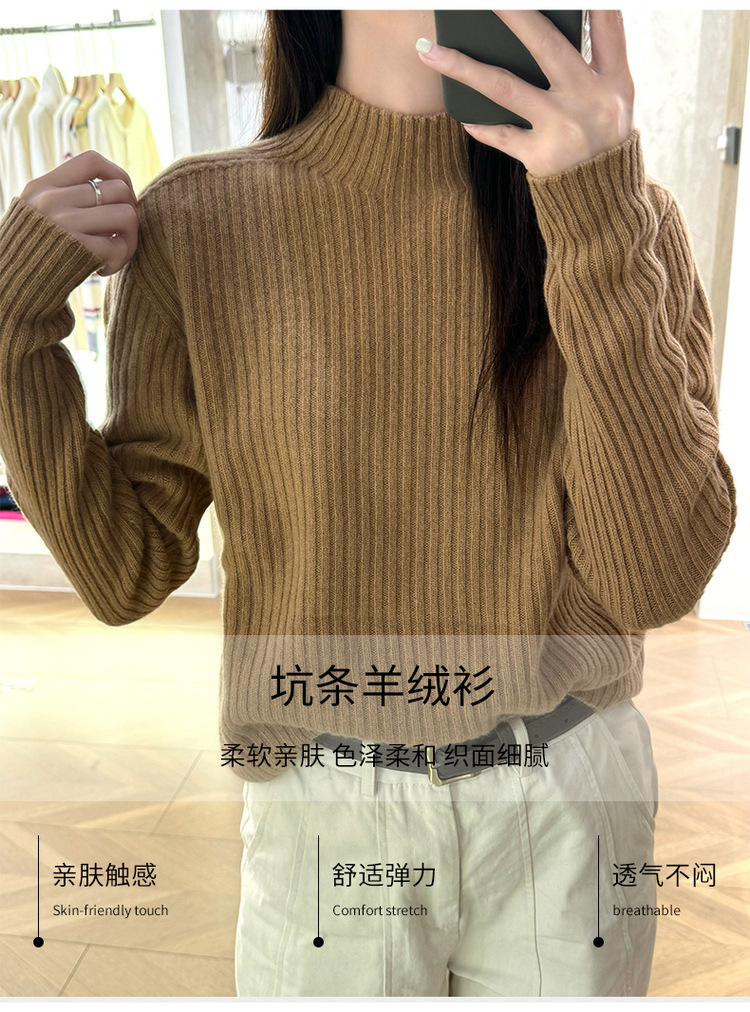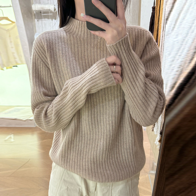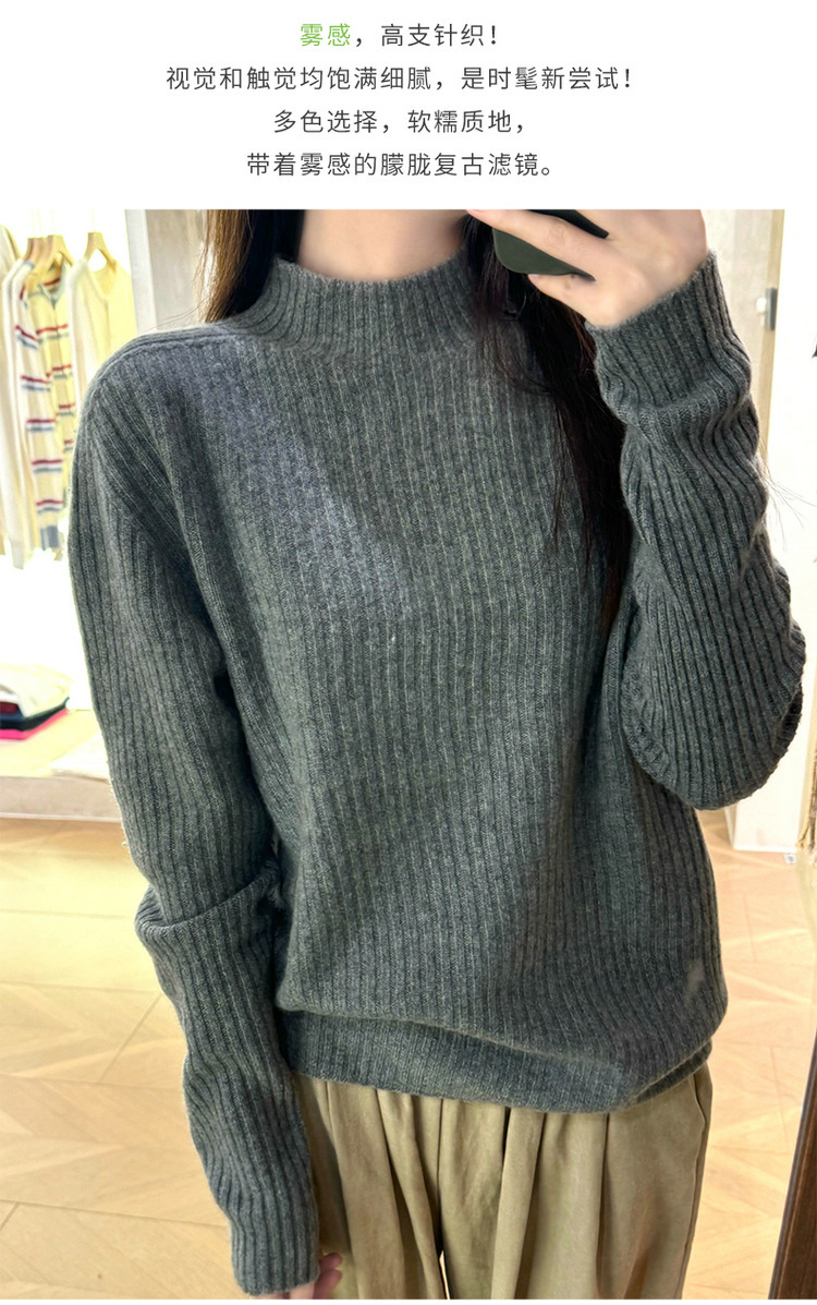 퍼스트 라인 원활한 패션 핏 캐시미어 스웨터 세미 하이 칼라 베이스 셔츠 여성의 가을 및 겨울 솔리드 컬러 베이스 내부 니트 스웨터스토어 가기