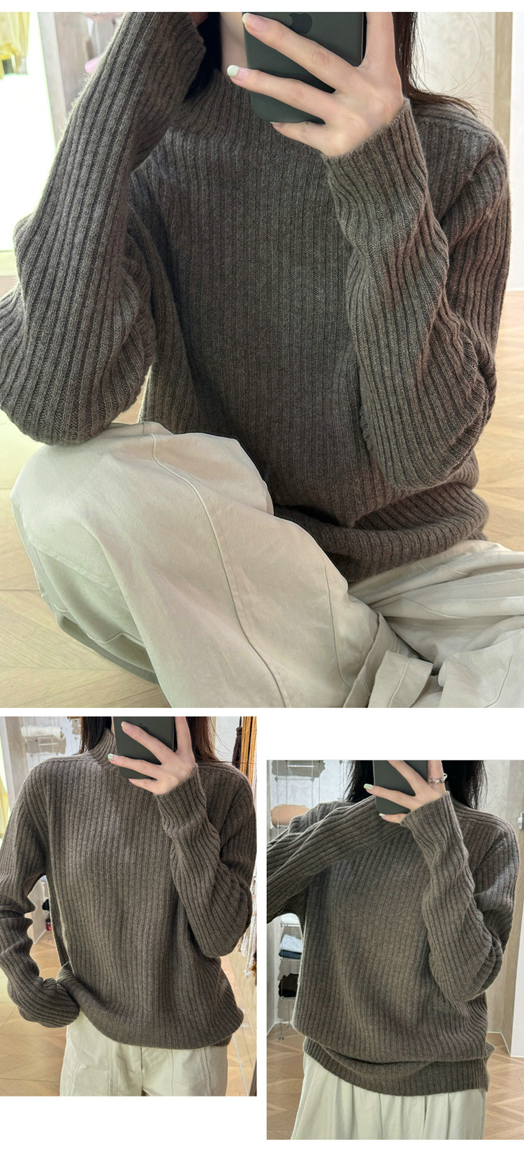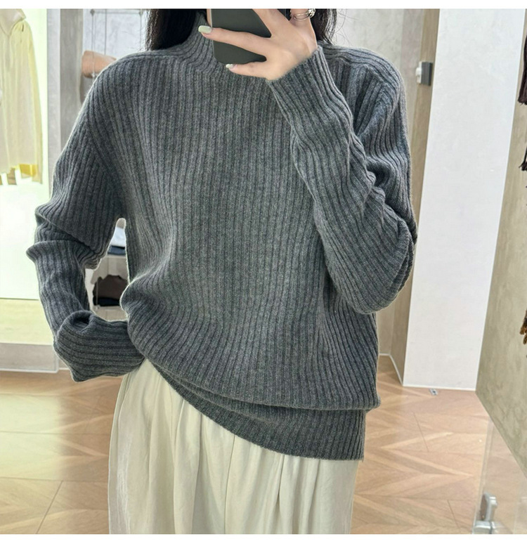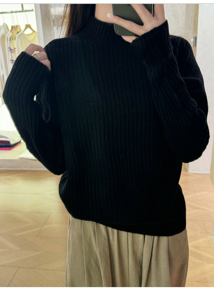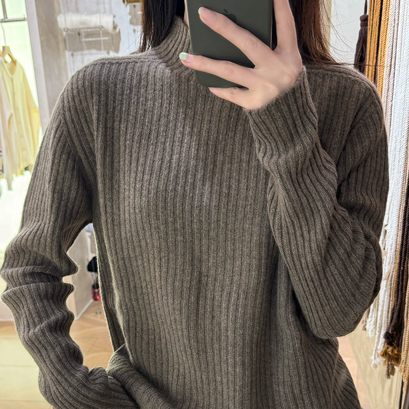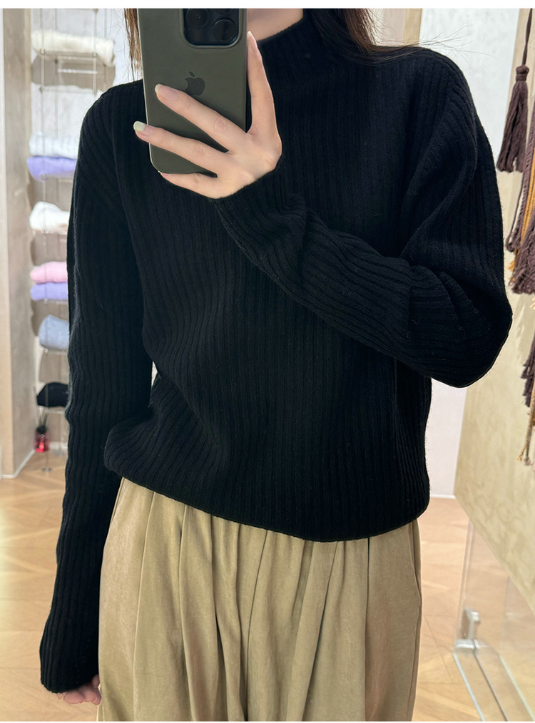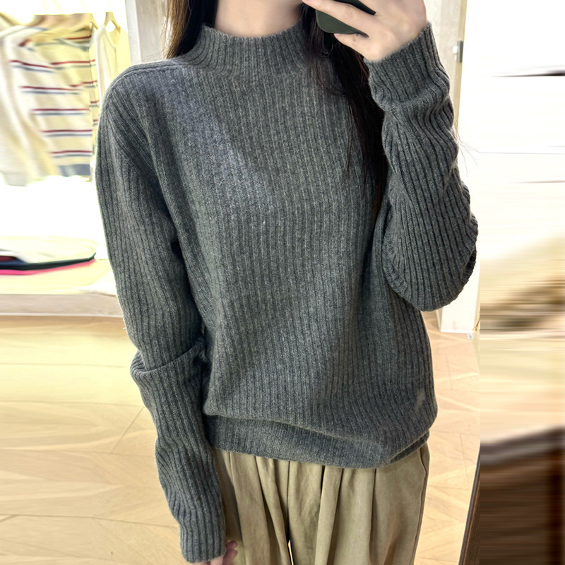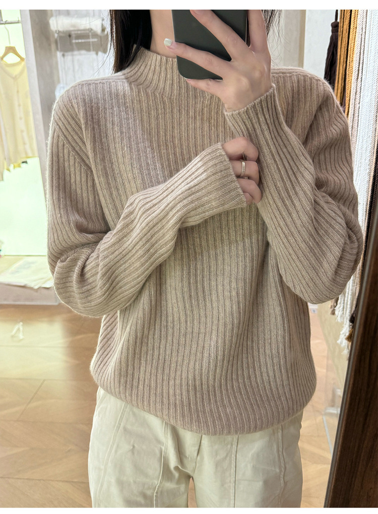 퍼스트 라인 원활한 패션 핏 캐시미어 스웨터 세미 하이 칼라 베이스 셔츠 여성의 가을 및 겨울 솔리드 컬러 베이스 내부 니트 스웨터스토어 가기