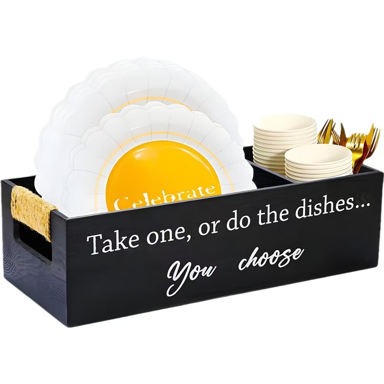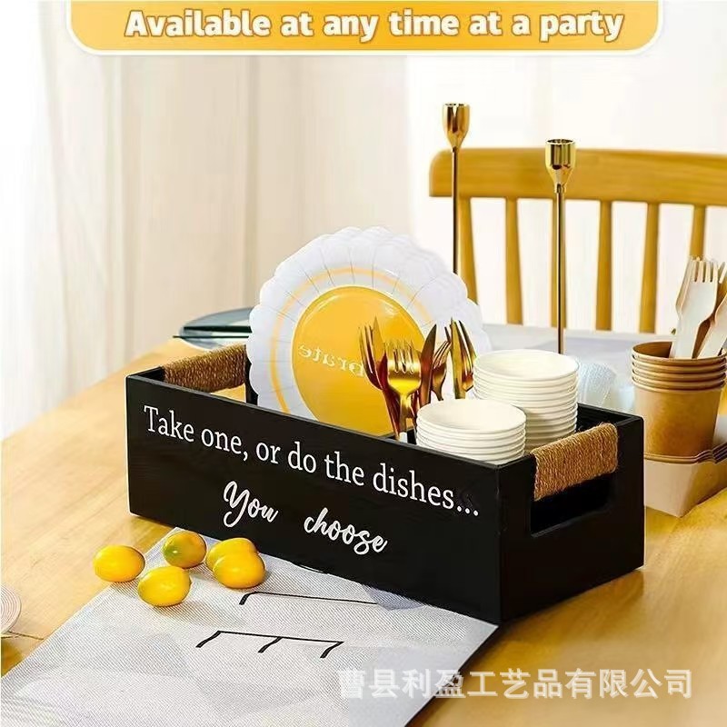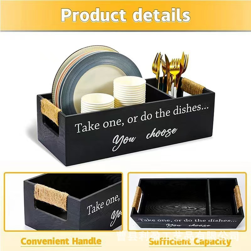 국경 간 나무 높은 얼굴 휴대용 주방 식기 저장 상자 단단한 나무 분할 일회용 종이 컵 나이프와 포크 저장 상자스토어 가기