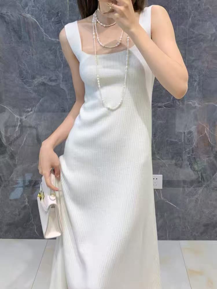 • 니트 서스펜더 스커트#아이보리 화이트