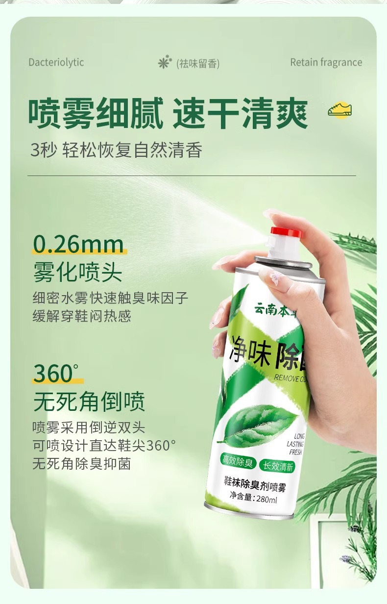 운남 허브 신발 탈취제 스프레이 스포츠 신발 및 양말 탈취제 살균 살균 냄새 신발 캐비닛 도매