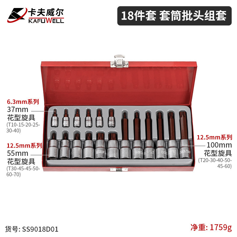 • 철제 상자에 들어 있는 슬리브 드라이버 세트 18개