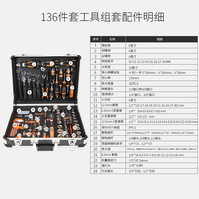 • 136피스 사출 성형 코너 대형 상자 도구 세트