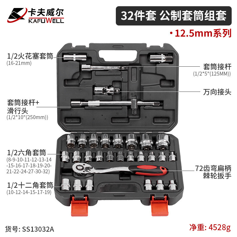 • 32피스 12.5MM 선형 미터법 소켓 세트 도구 세트