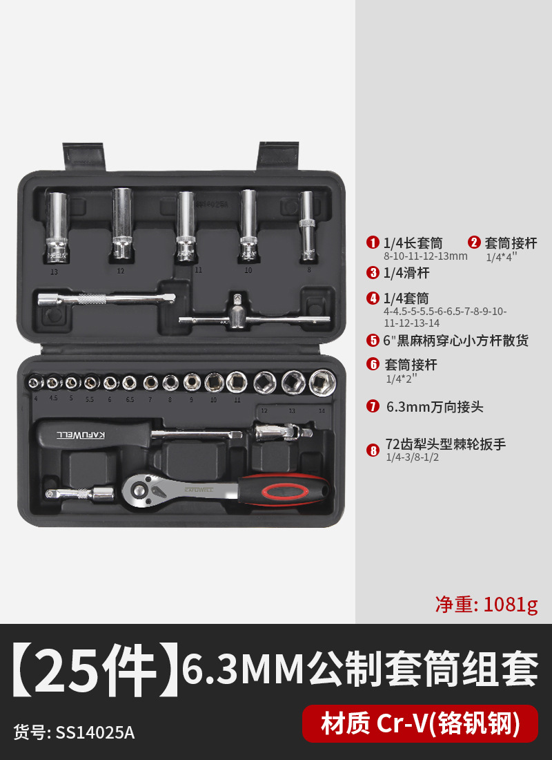 • 25개 세트 6.3MM 선형 미터 소켓 세트