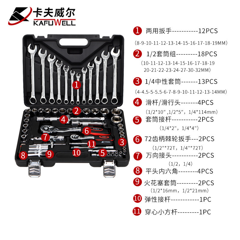 Kraftwell 정품 기계 수리 도구 상자 자동차 자동 수리 세트 래칫 소켓 렌치 워크샵 기계 수리