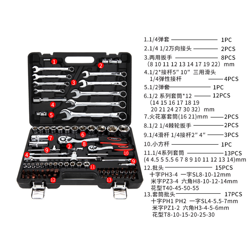 • 94개 세트 6.3MM, 12.5MM 미터법 종합 도구 세트