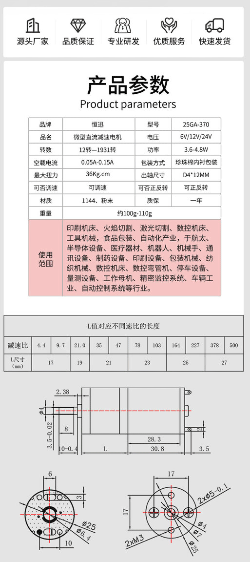 Hengxun GA25-370 마이크로 DC 기어 모터 6V12V24v 대형 토크 모터 저속 소형 모터스토어 가기