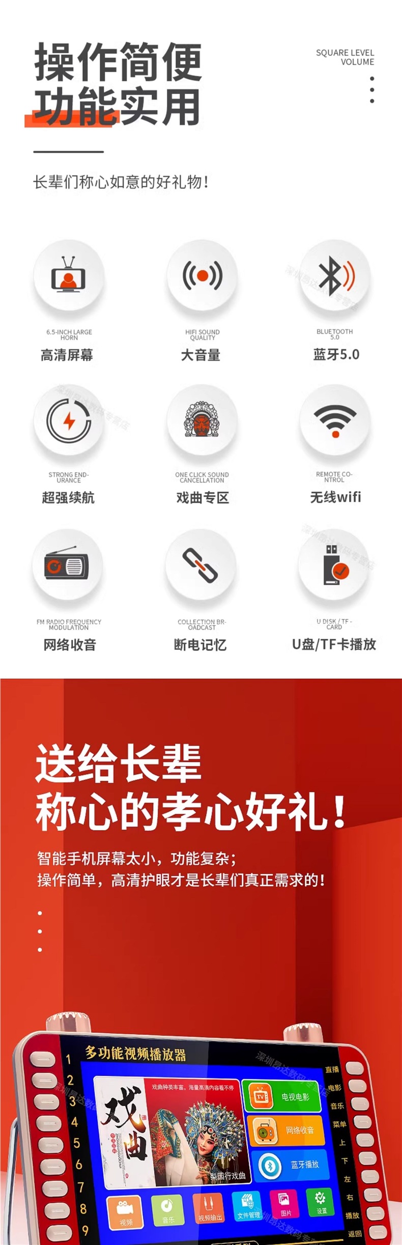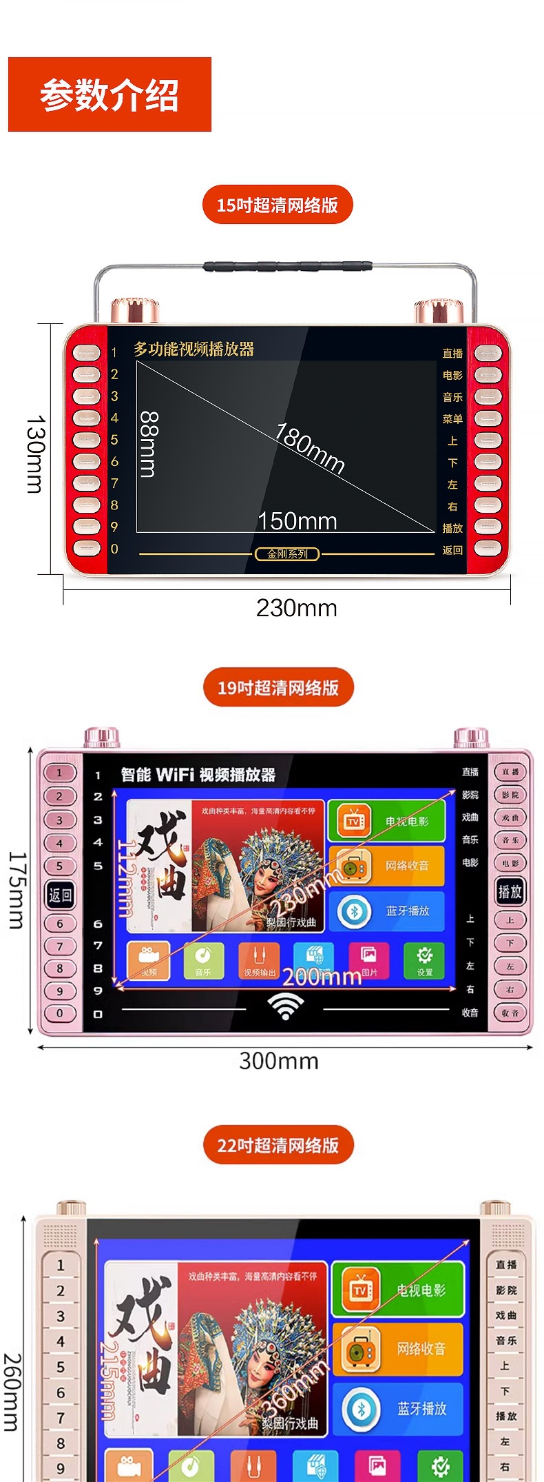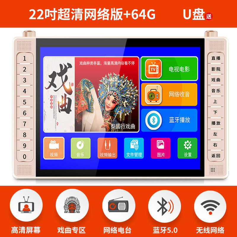 다기능 휴대용 비디오 플레이어 네트워크 와이파이 작은 TV 오래된 사람들의 극장 기계 라디오