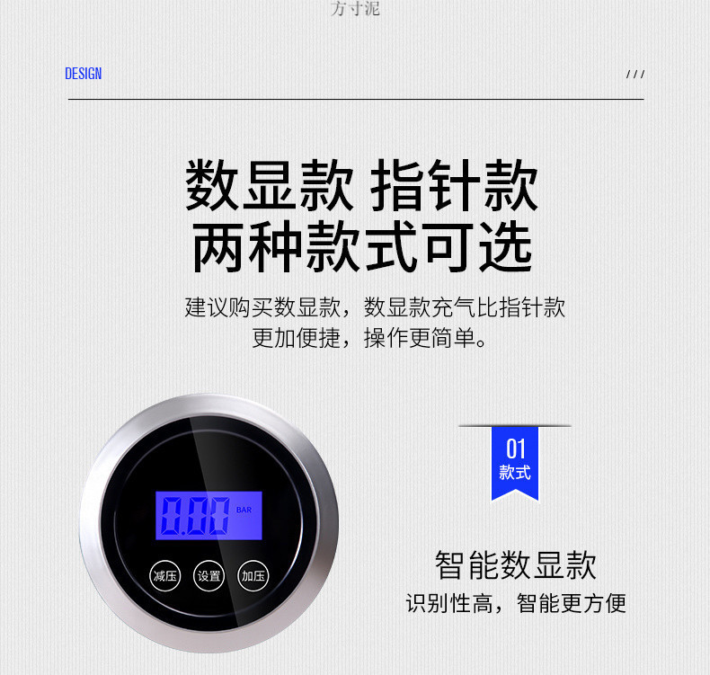 • 디지털 디스플레이 프리셋 모델 [압력 측정/자동 정지] + 가정용 변환기 - 골드 스틸 공기 펌프 [업그레이드된 전체 구리 모터 22 실린더]