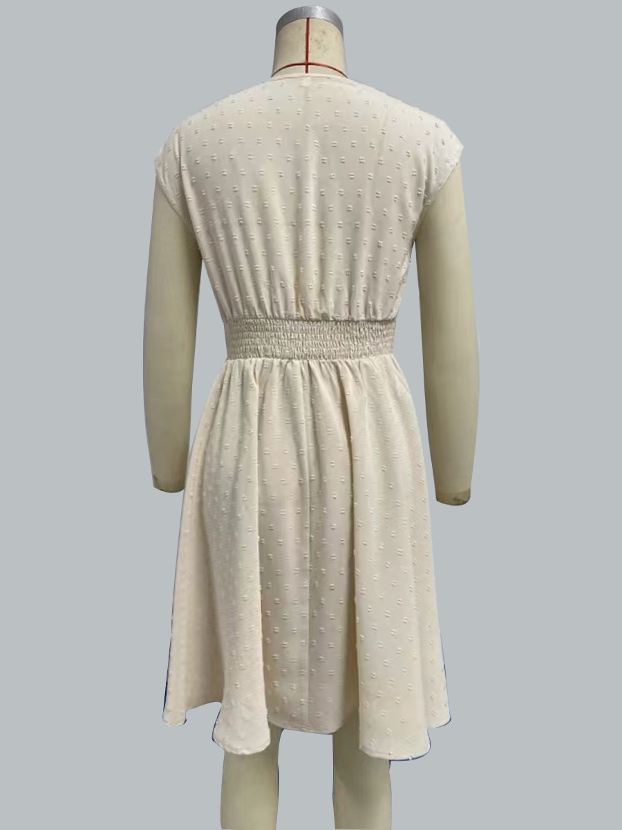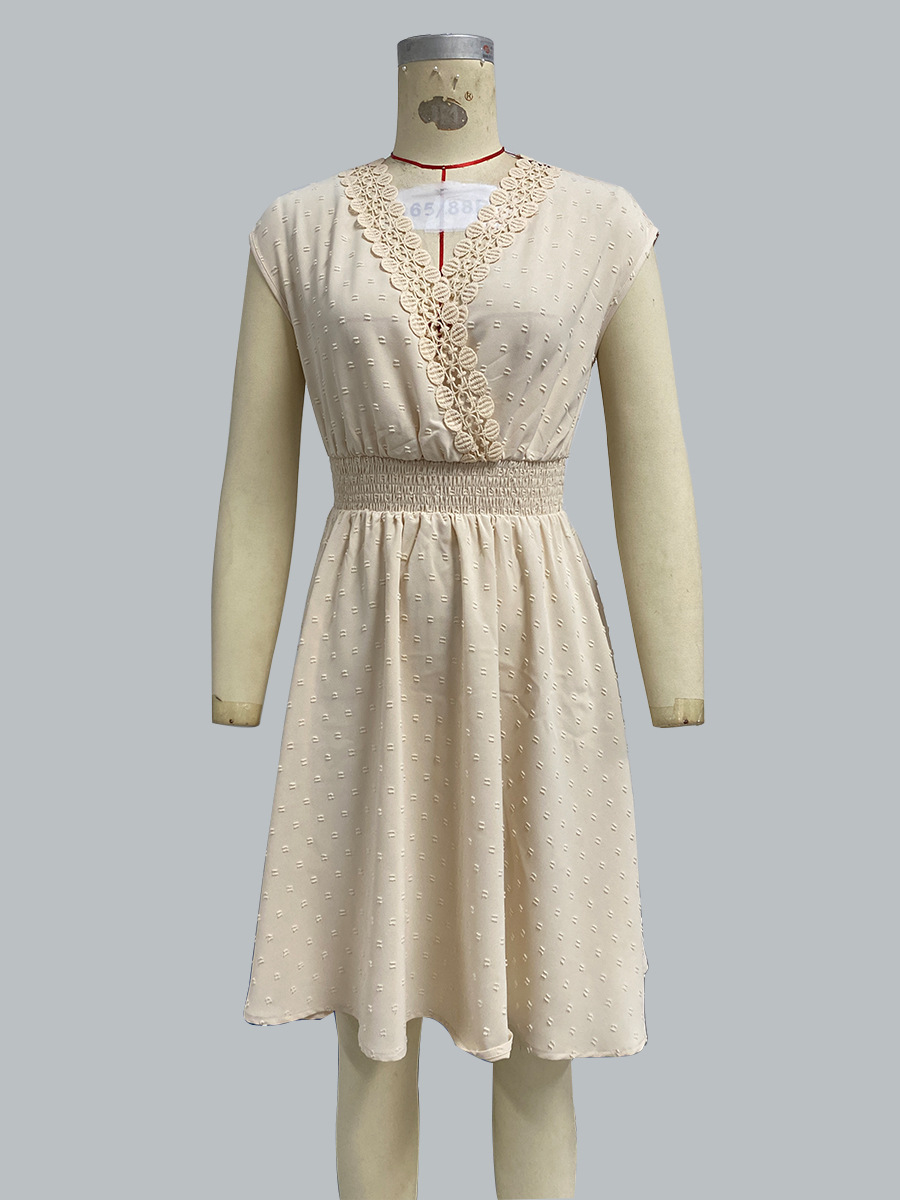 Ruiqiu 크로스보더 여성 의류 2025 여름 프랑스 휴가 스타일 레이스 중공 V넥 드레스, 컷아웃 디자인과 A라인 스커트
