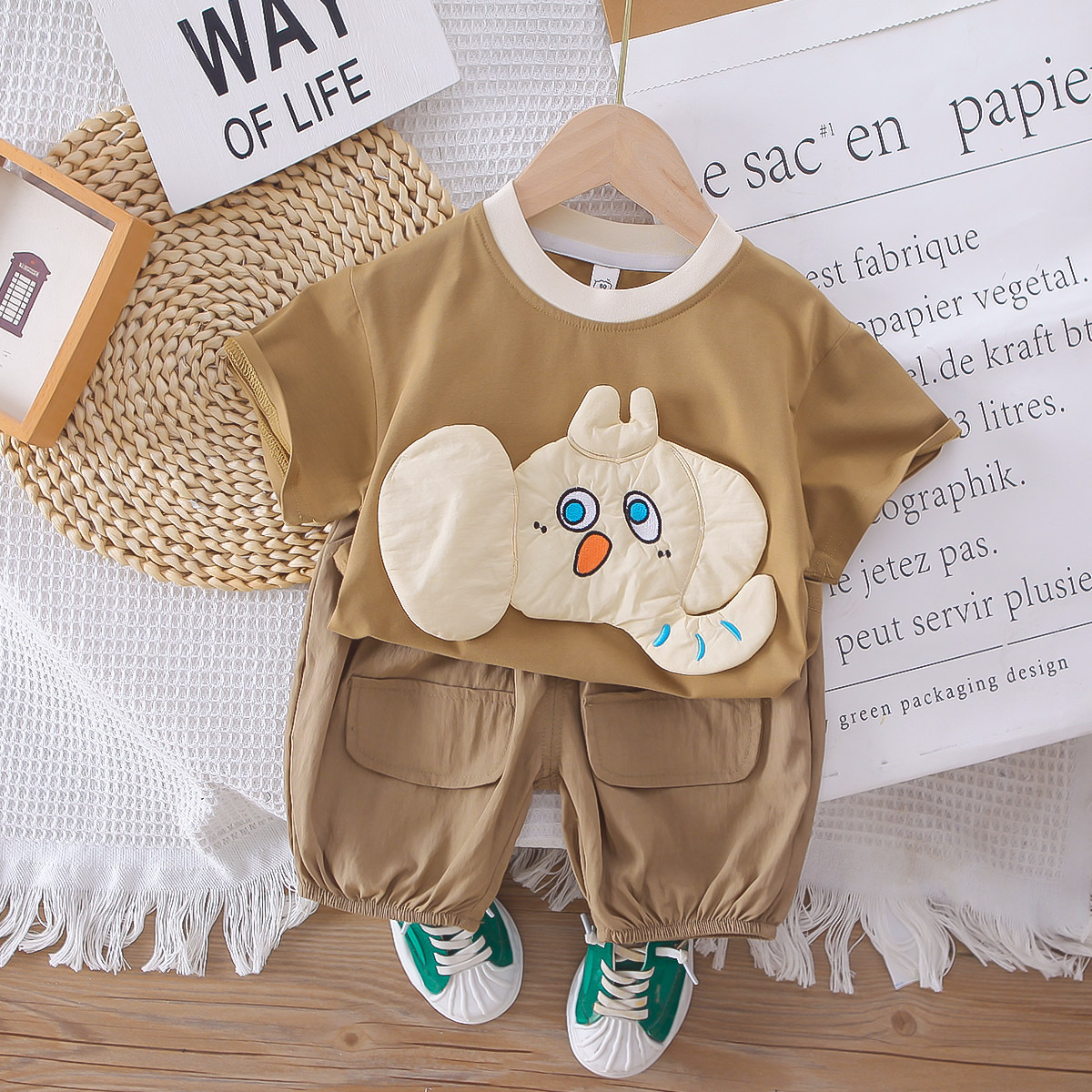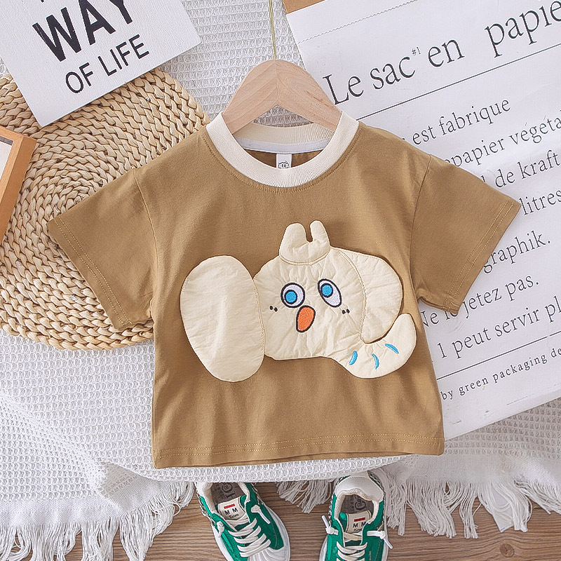 패션 만화 인형 아기 코끼리 어린이 소년 반팔 티셔츠 여름 얇은 새로운 느슨한 큰 어린이 올 매치 여름 원피스