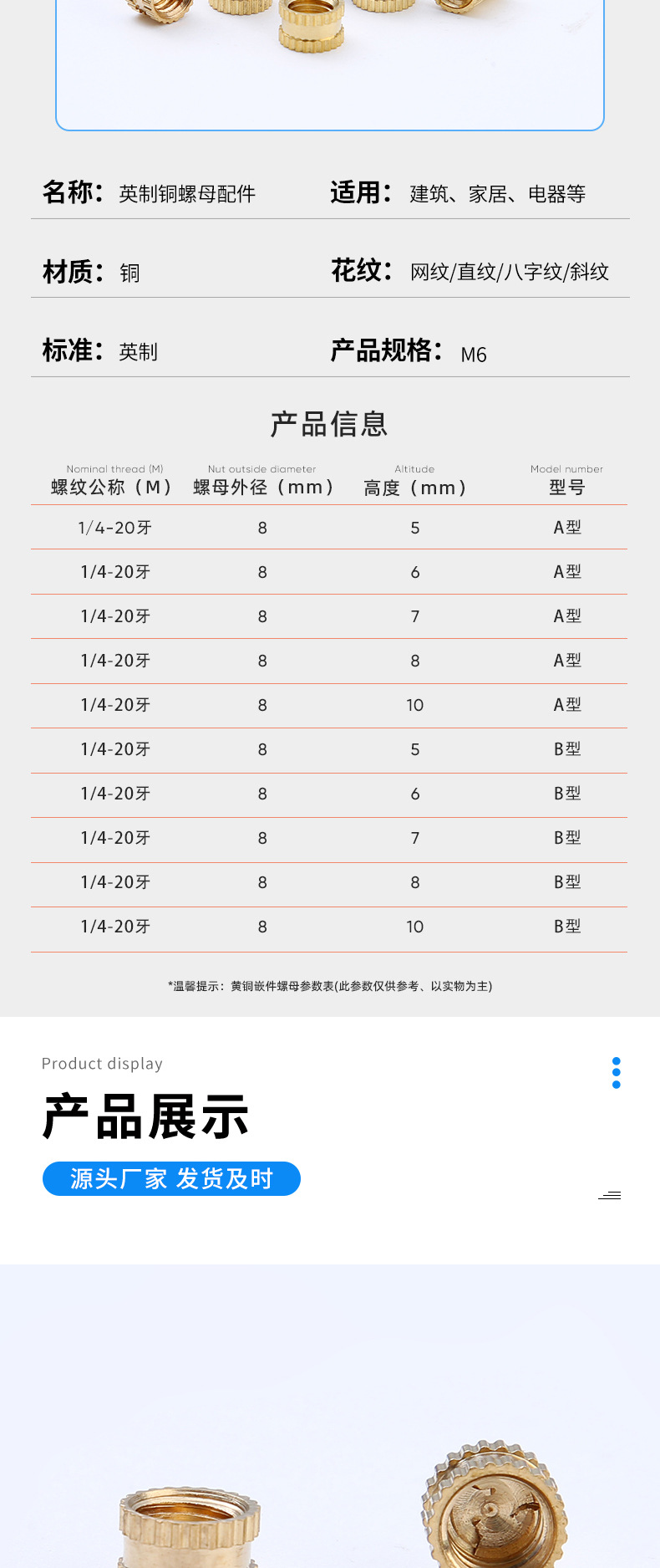 구리 너트 주입 너트 인치 치아 셀카 스틱 뷰티 램프 라이브 프레임 주입 너트 도매