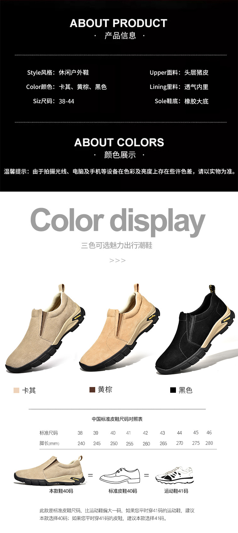 새로운 남성 국경 야외 플러스 사이즈 캐주얼 가죽 신발 프로스트 정품 가죽 통기성 발 신발 미끄럼 방지 야외 신발