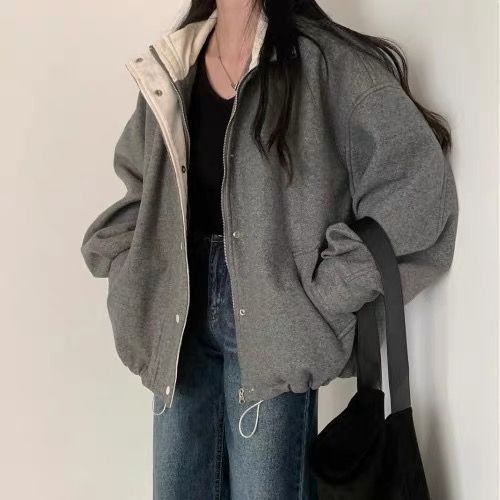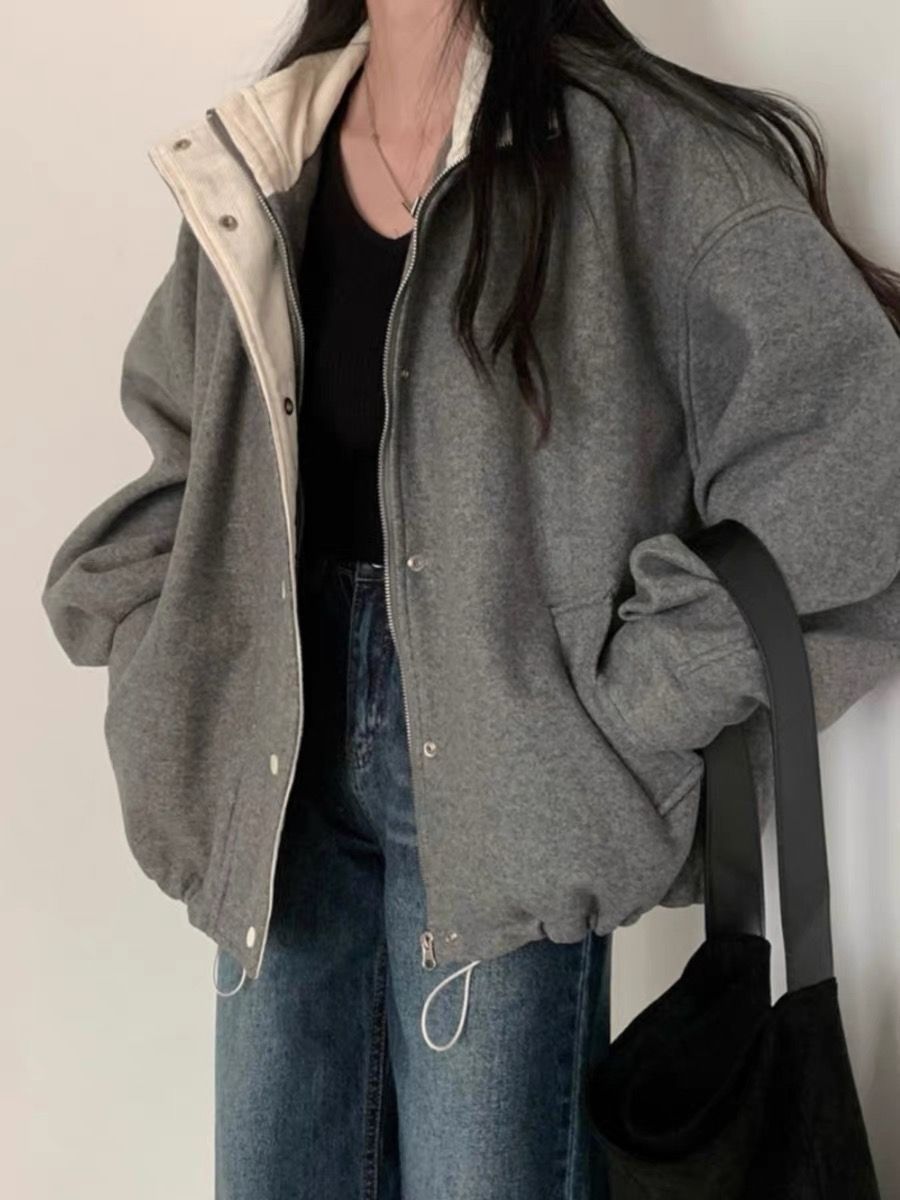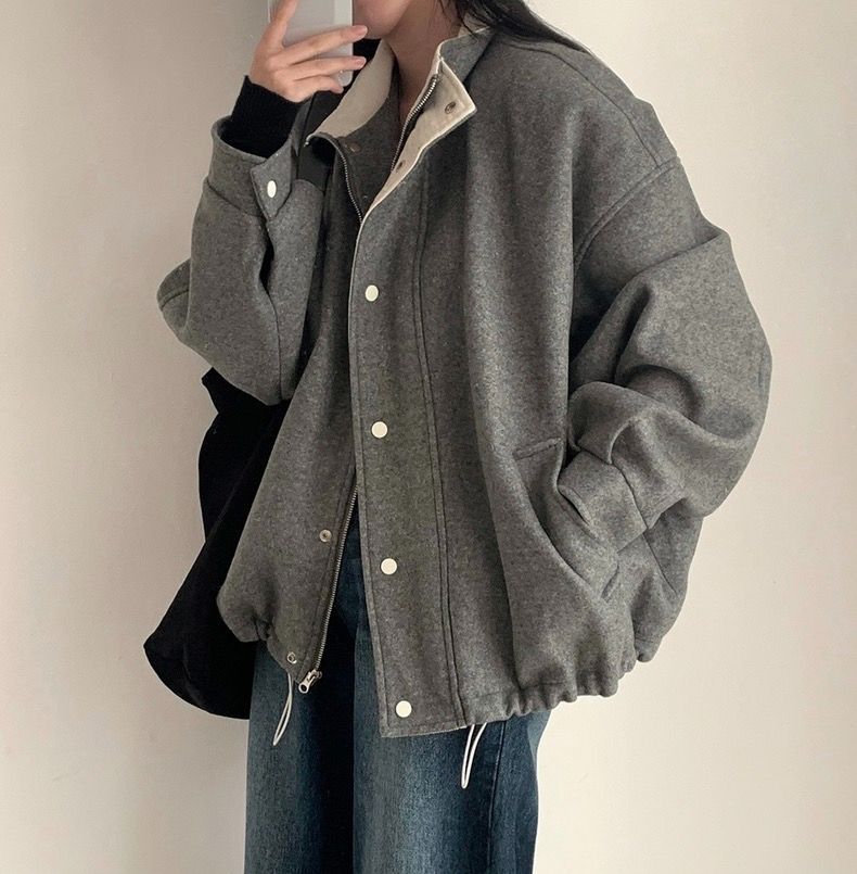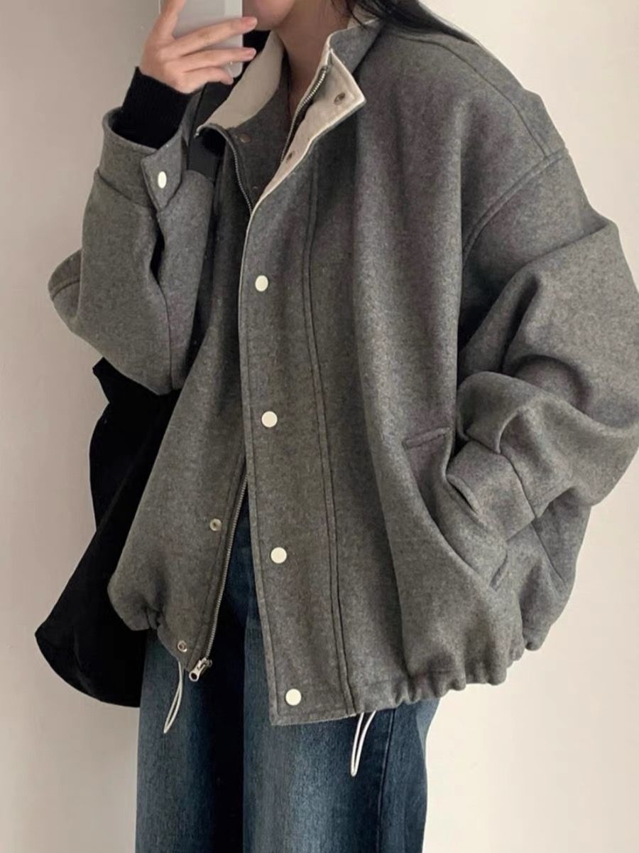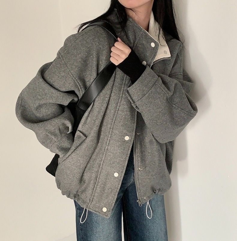 프랑스 레트로 그레이 모직 코트 여자 2025 봄 새로운 우아한 루즈 재킷 야구 세트 코트 탑스토어 가기