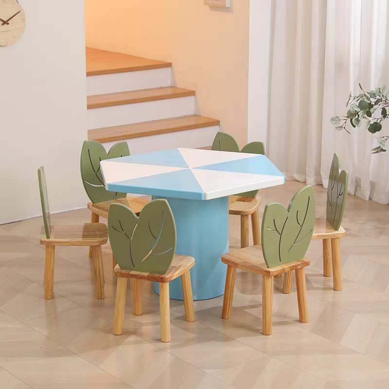 유치원 손으로 그린 테이블 단단한 나무 테이블 및 의자 세트 판매 사무실 어린이 지역 리셉션 조기 교육 조합 테이블 및 의자