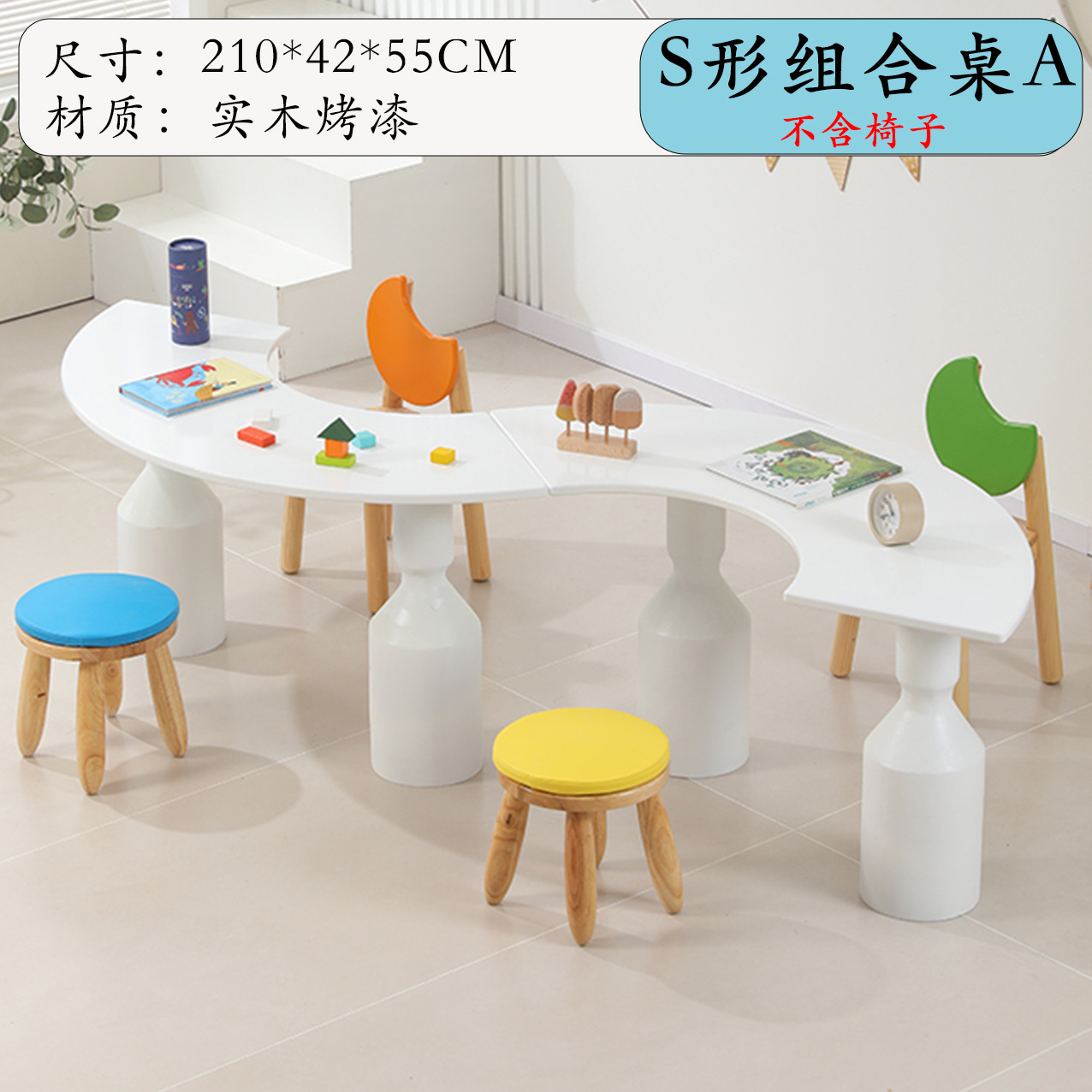 유치원 손으로 그린 테이블 단단한 나무 테이블 및 의자 세트 판매 사무실 어린이 지역 리셉션 조기 교육 조합 테이블 및 의자스토어 가기