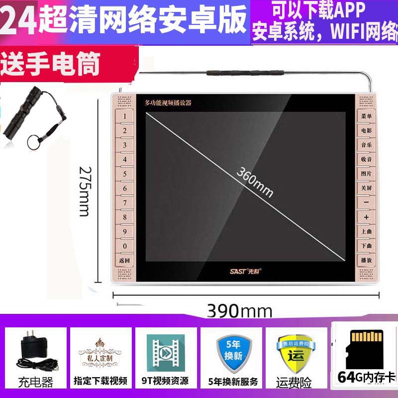 • 24' 울트라 클리어 네트워크 안드로이드 버전 + 16G 메모리 카드] [4개의 리튬 배터리 버전]