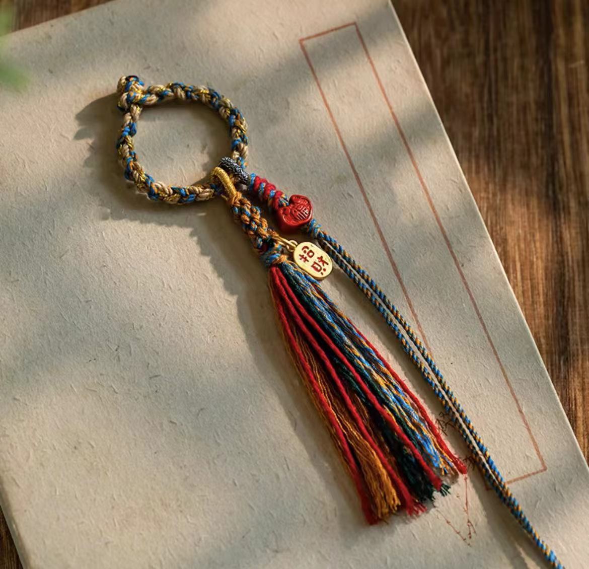 손으로 짠 티베트어 술 자동차 키 체인 반제품 끈 액세서리 여성용 휴대 전화 체인 DIY 펜던트스토어 가기