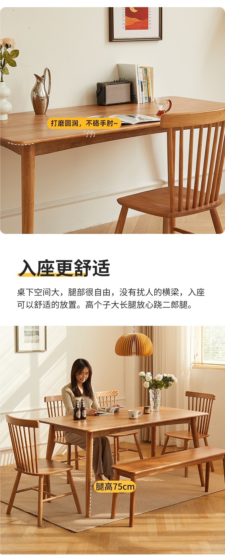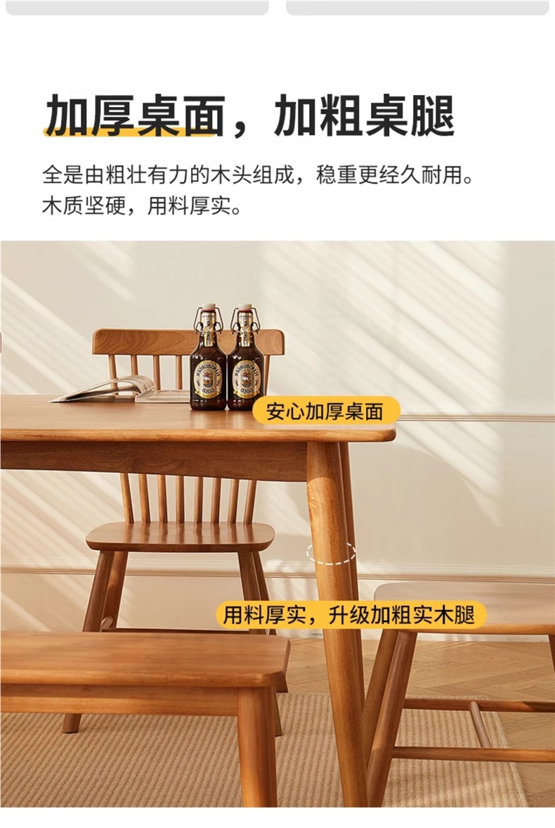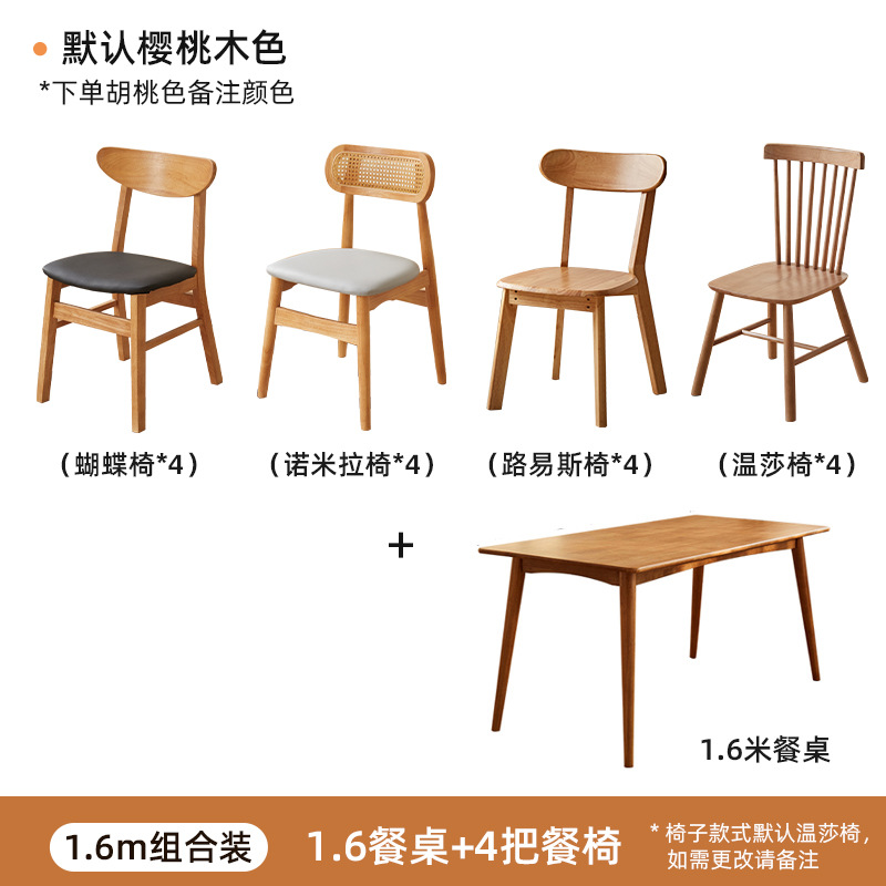 모든 단단한 나무 식탁 및 의자 조합 작은 아파트 현대 간단한 체리 컬러 레스토랑 직사각형 식탁 가정용 책 테이블스토어 가기