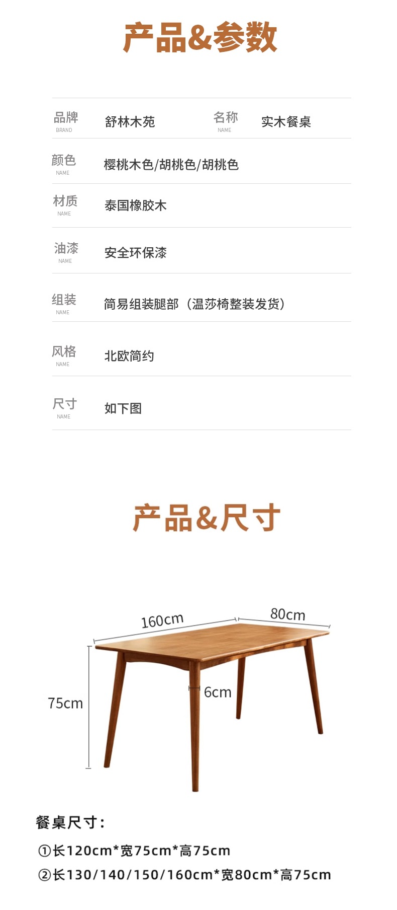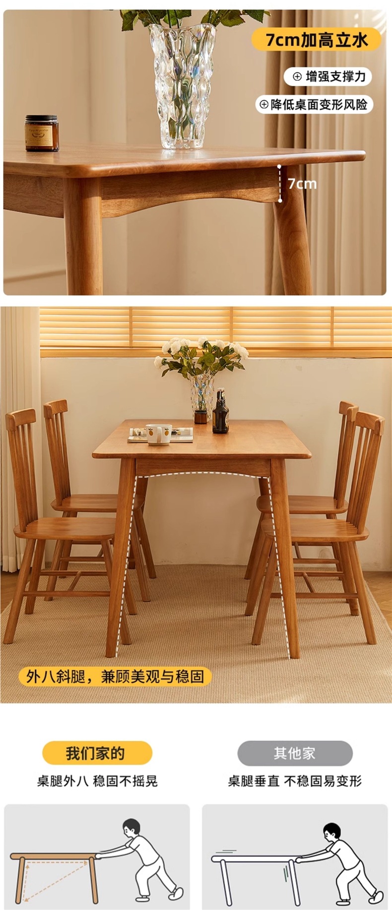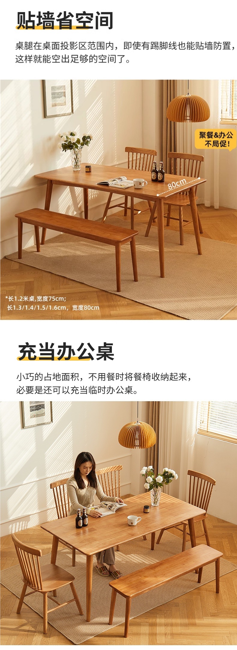 모든 단단한 나무 식탁 및 의자 조합 작은 아파트 현대 간단한 체리 컬러 레스토랑 직사각형 식탁 가정용 책 테이블스토어 가기