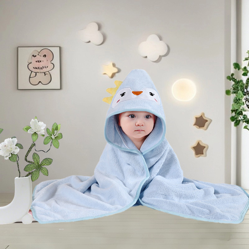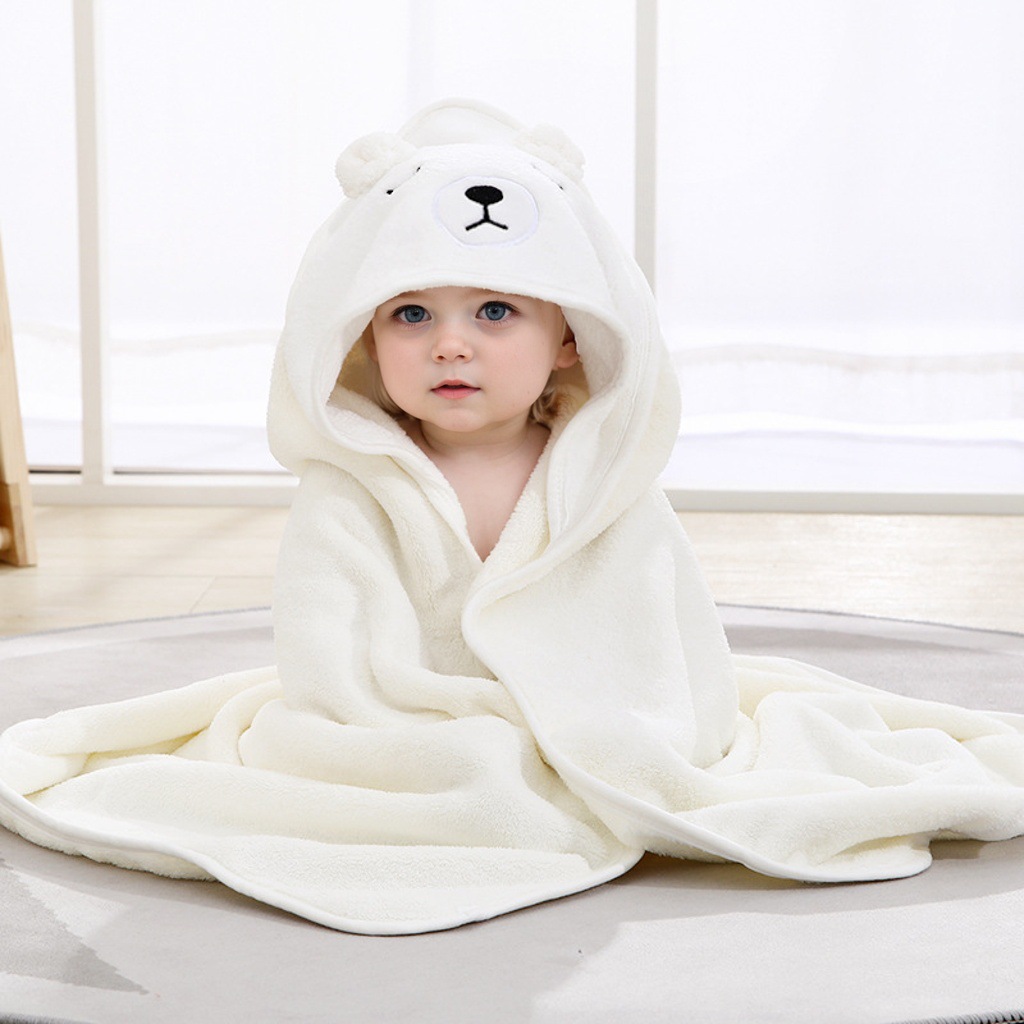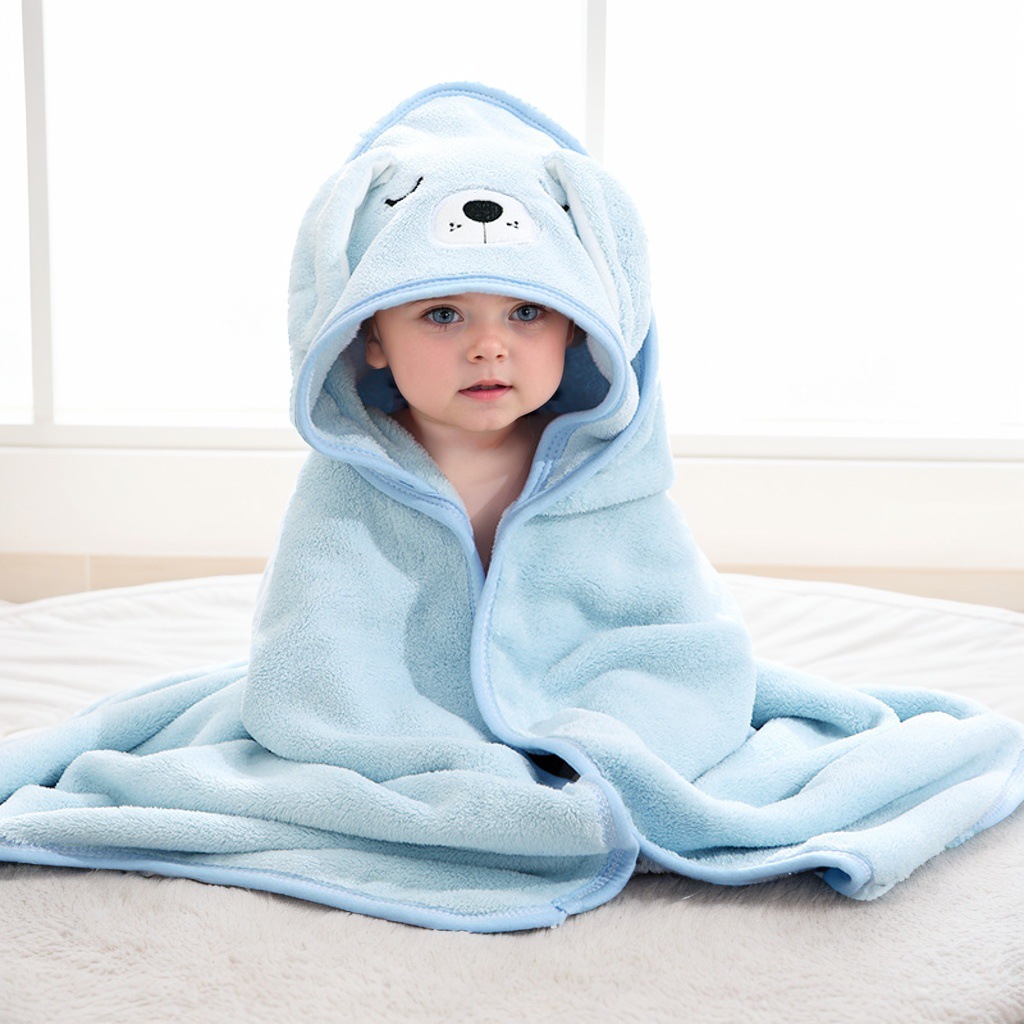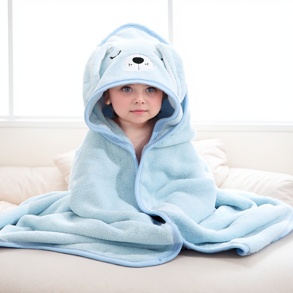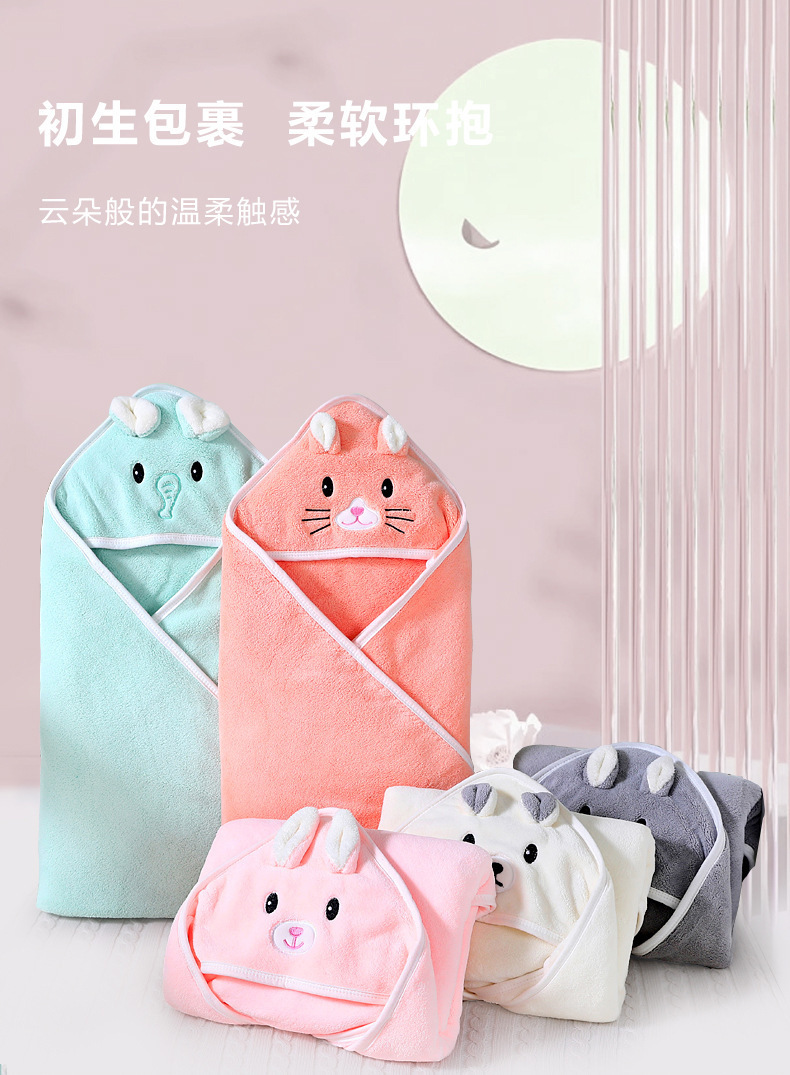 아기 만화 캐릭터 담요, 산호 벨벳 흡수성 어린이 목욕 타월, 자수 담요, 후드가 달린 망토, 신생아 담요, 유아용