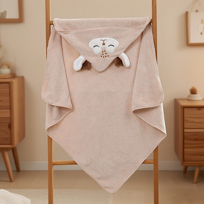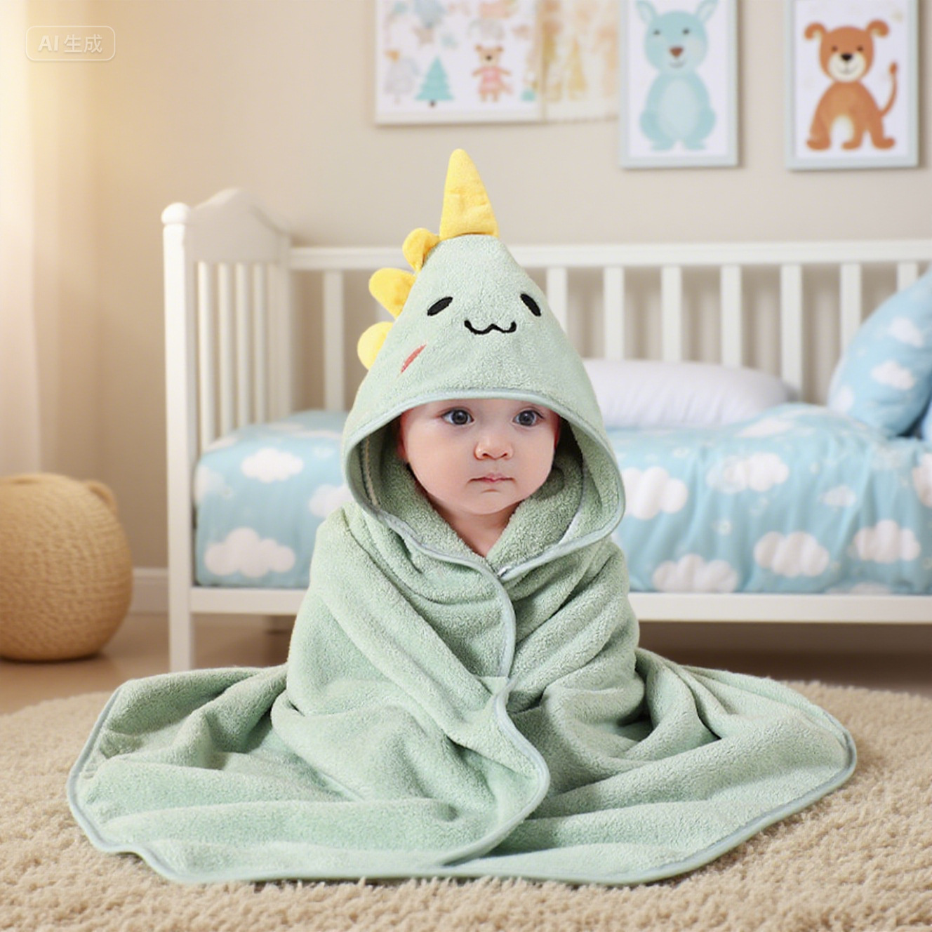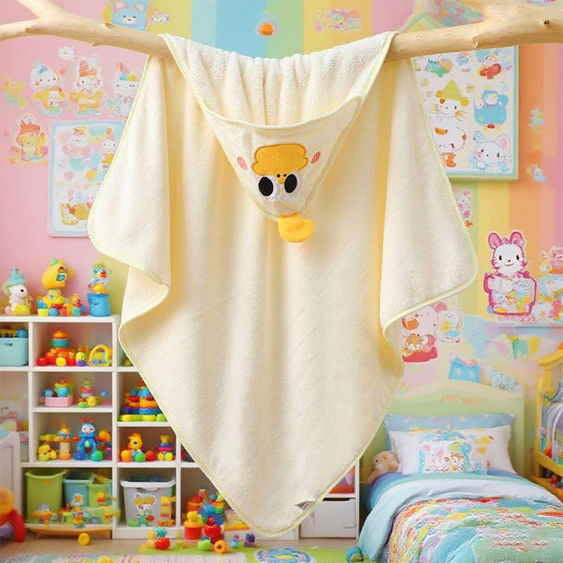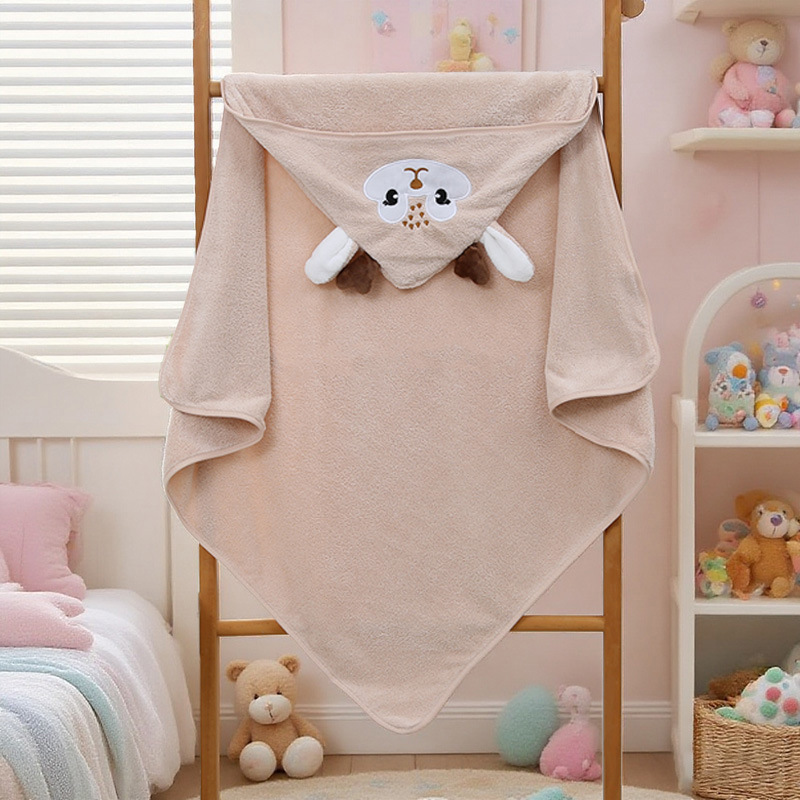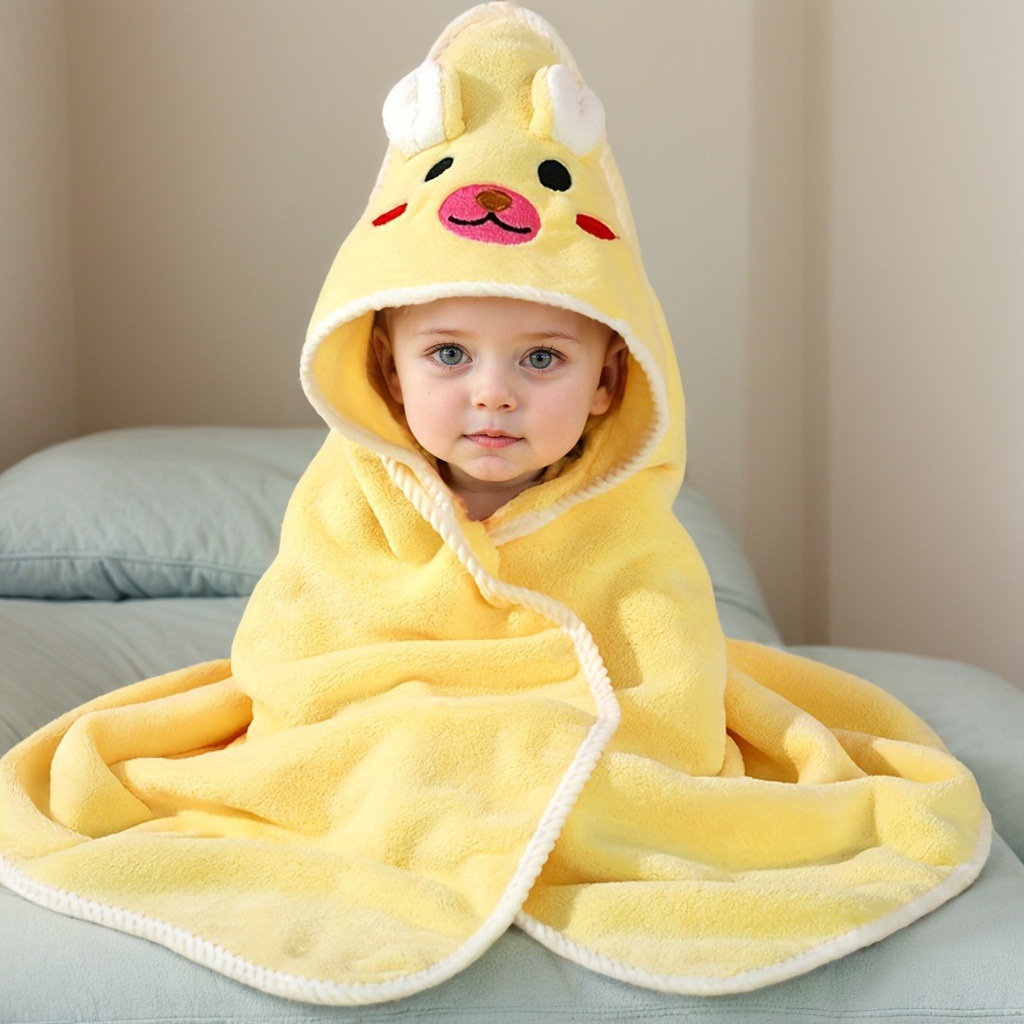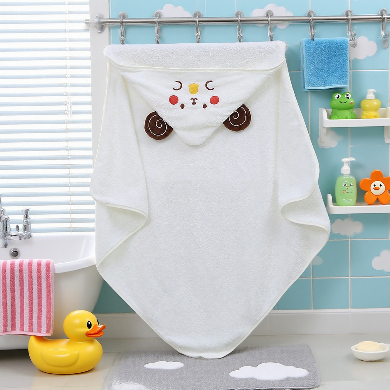 아기 만화 캐릭터 담요, 산호 벨벳 흡수성 어린이 목욕 타월, 자수 담요, 후드가 달린 망토, 신생아 담요, 유아용