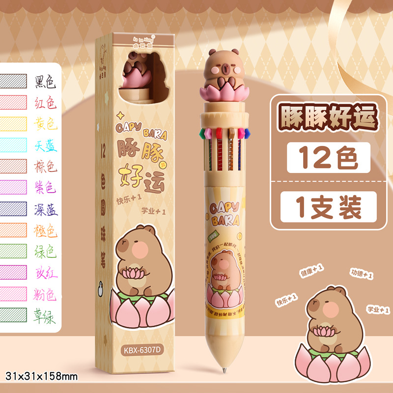 12 색 볼펜 만화 귀여운 창조적 인 멀티 컬러 프레스 타입 컬러 다기능 멀티 컬러 원 젤 펜 프레스스토어 가기