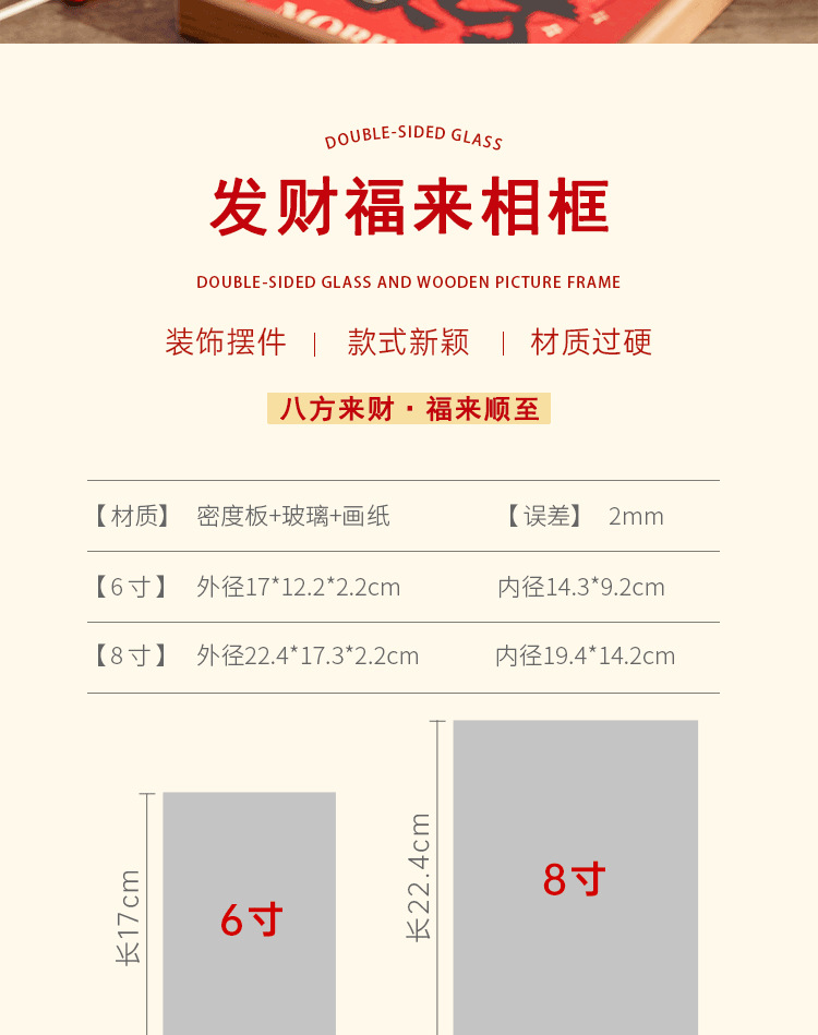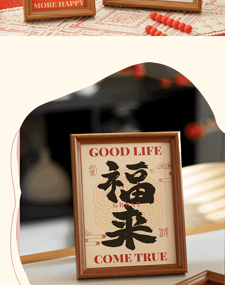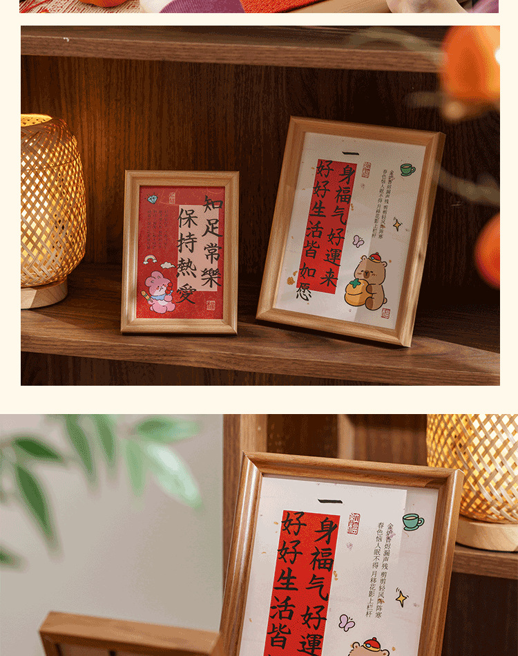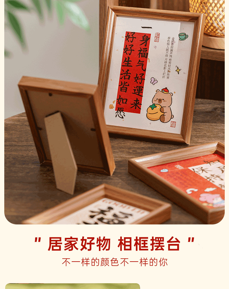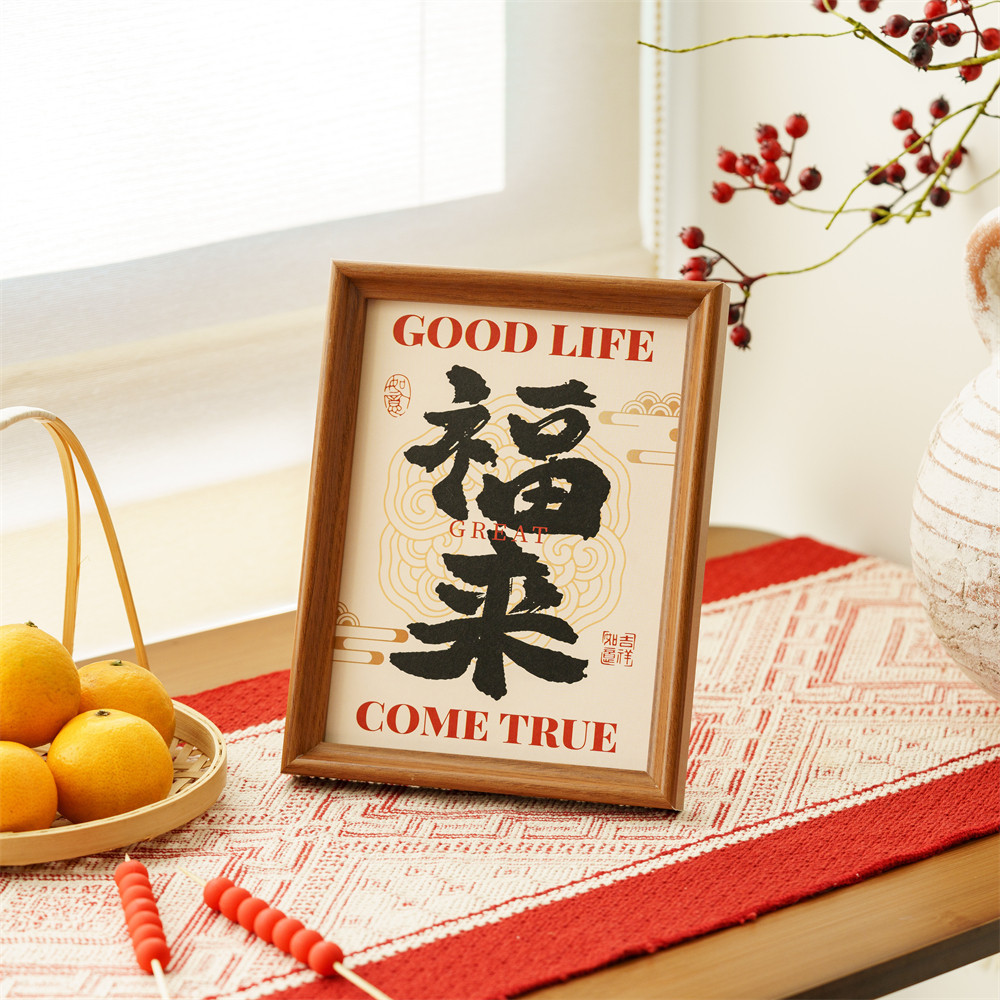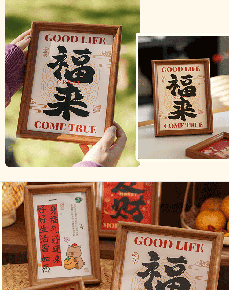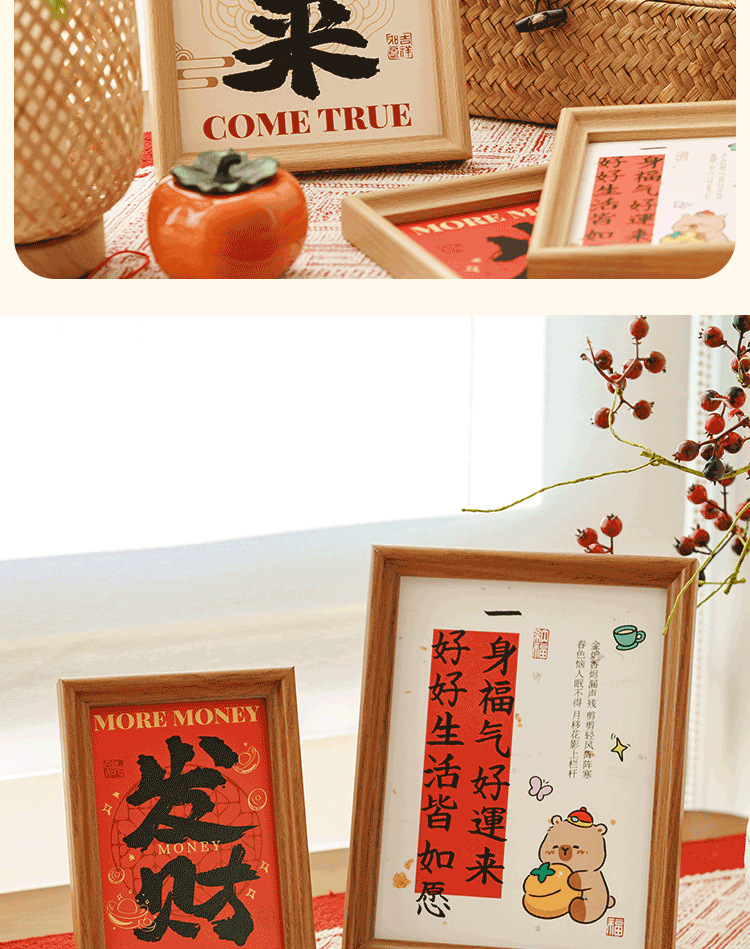 크라운 Amoy 새해 포춘 사진 프레임 호두 컬러 봄 축제 테이블 따뜻한 주거 입구 테이블 장식품 장식 사진 프레임