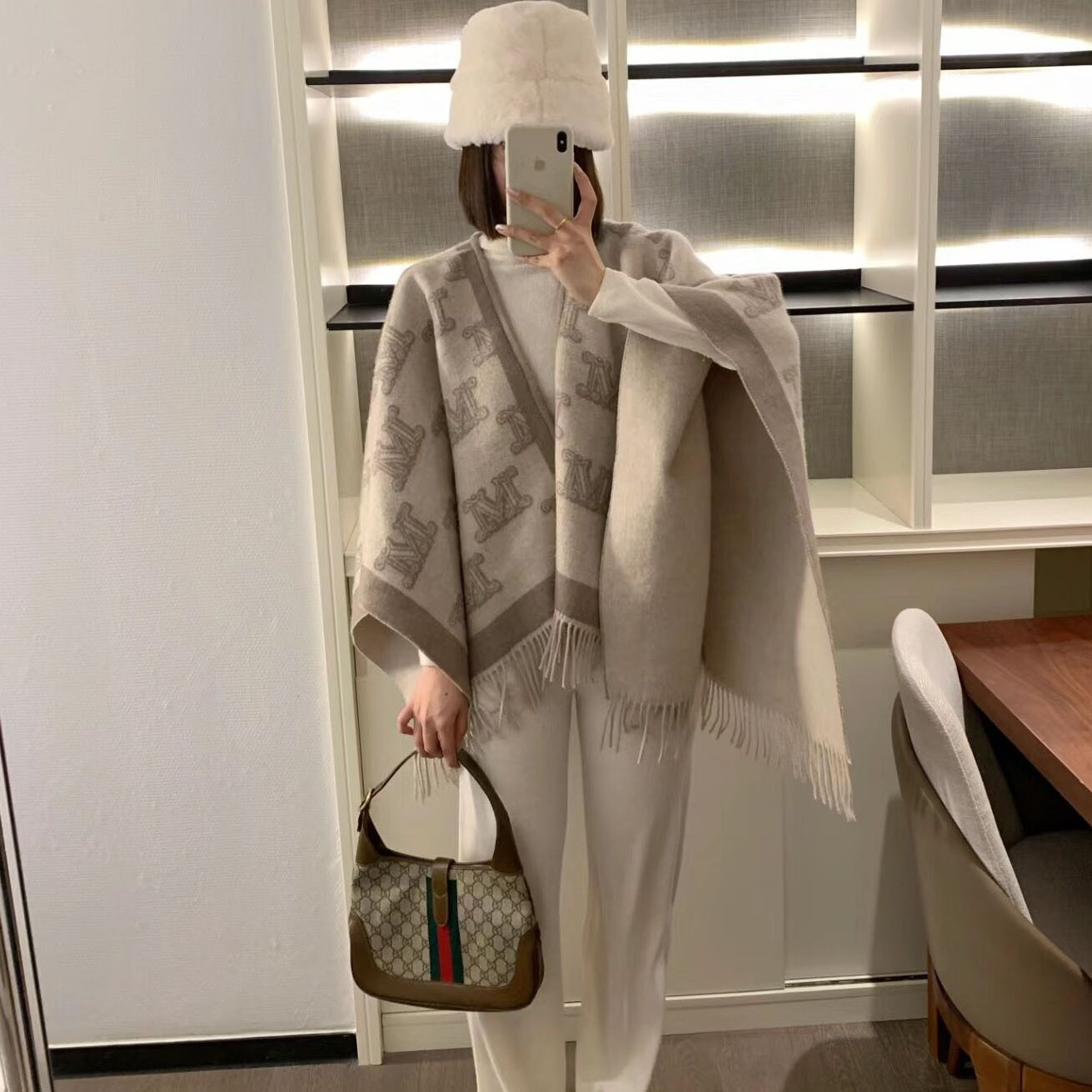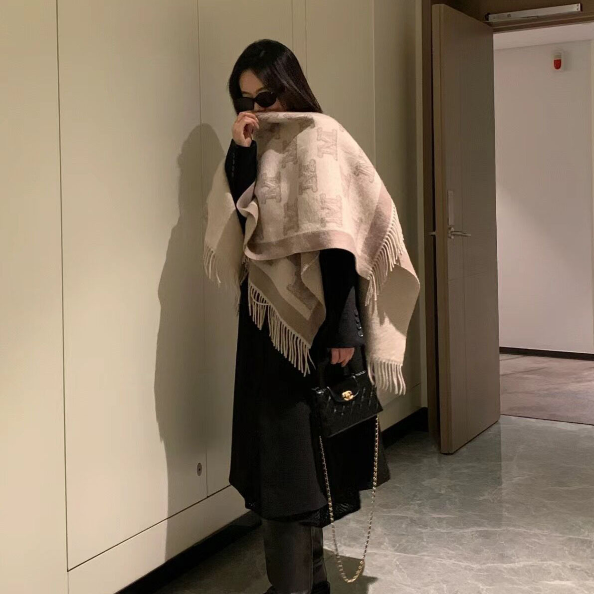 신상품 대형 양면 모조 울 숄 스카프 겨울 인기 숄 따뜻한 오픈 슬릿 케이프 숄 여성용 프린지스토어 가기
