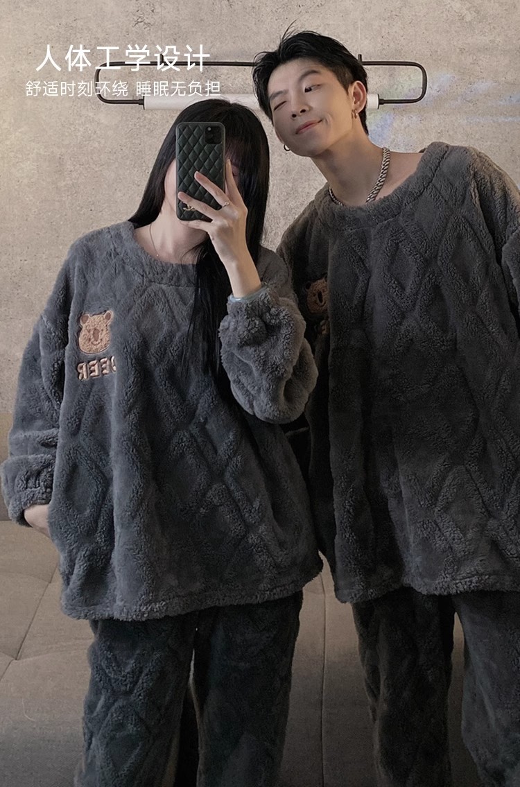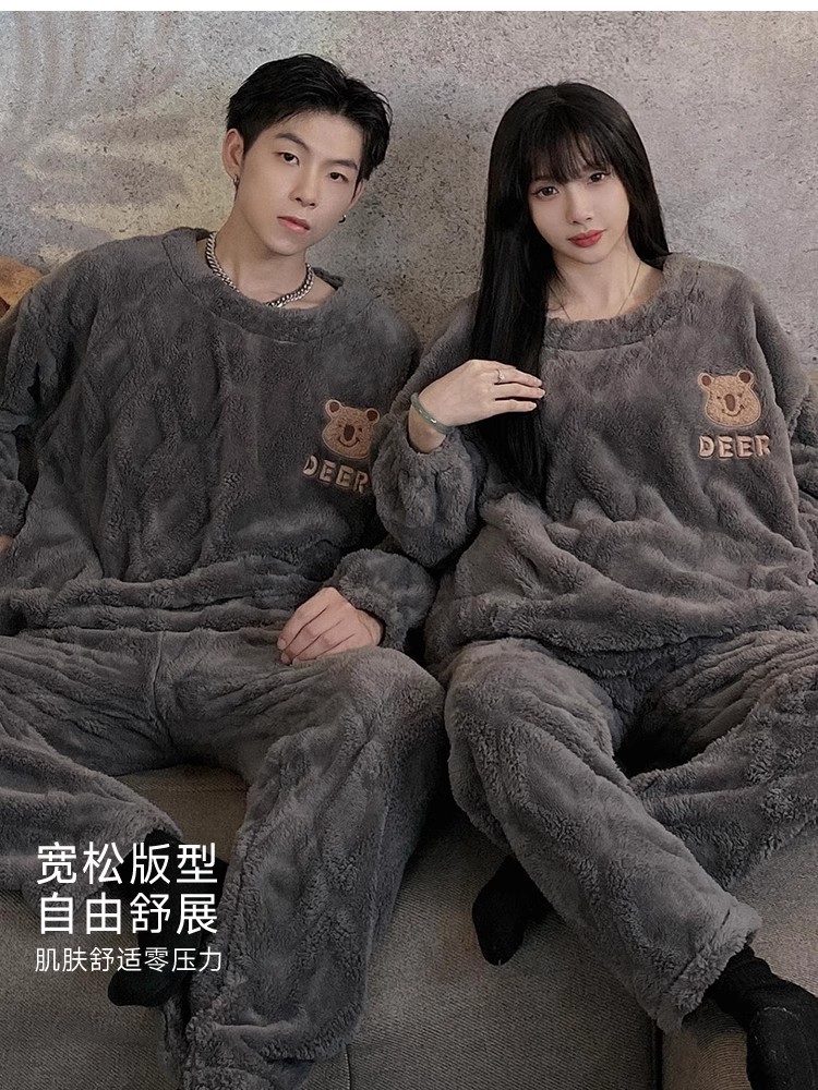 2024 가을과 겨울 커플 잠옷 여성의 따뜻한 플란넬 긴팔 남성 산호 양털 집 옷은 세트 밖에서 입을 수 있습니다.스토어 가기