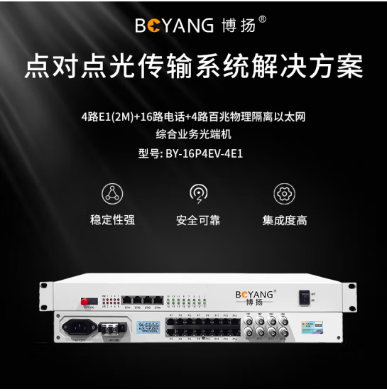 博扬 多功能综合业务光端机 4E1+16路电话+4路百兆以太网物理隔离 单纤60km机架式 1对 BY-16P4EV-4E1