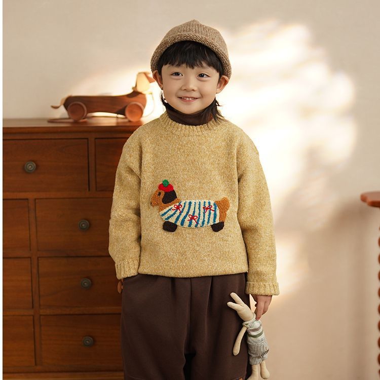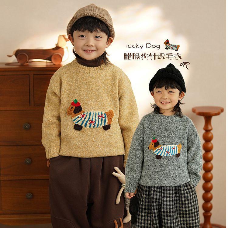 한국 캐주얼 Wachshund 개 스웨터 어린이 따뜻한 니트웨어 남성용 보물 수장베이스 패션 스웨터 겨울 유행스토어 가기