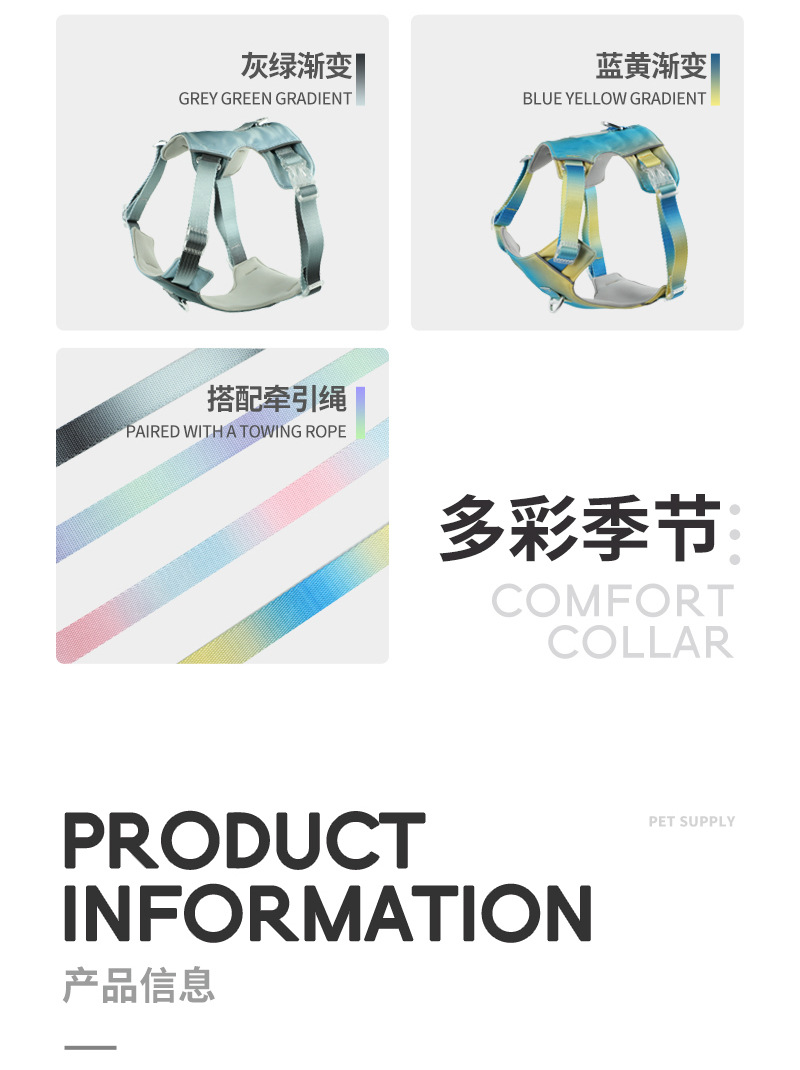 그라디언트 개 견인 로프 조끼 가슴 코트 애완 동물 가슴 스트랩 개 스트랩 중형 및 대형 개 애완 동물 용품