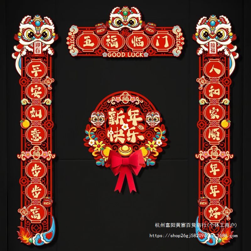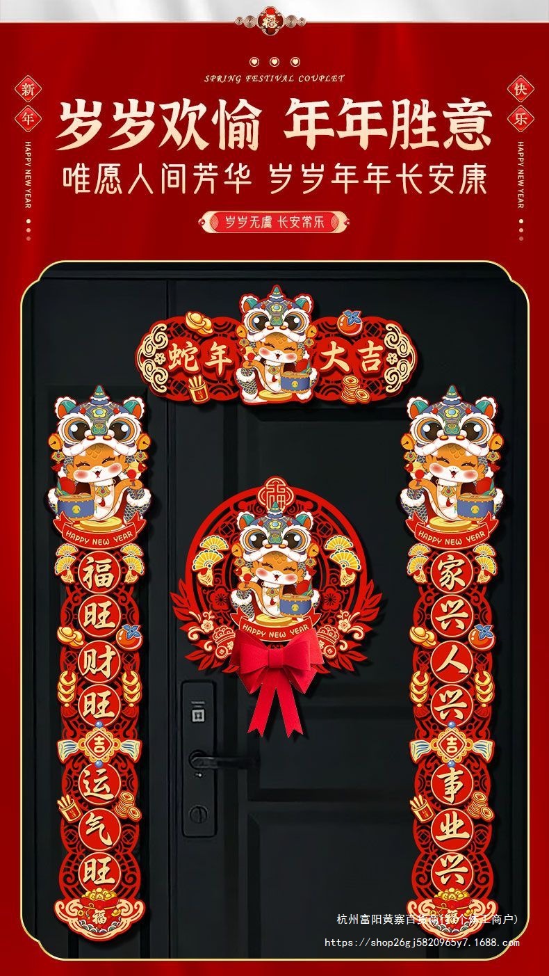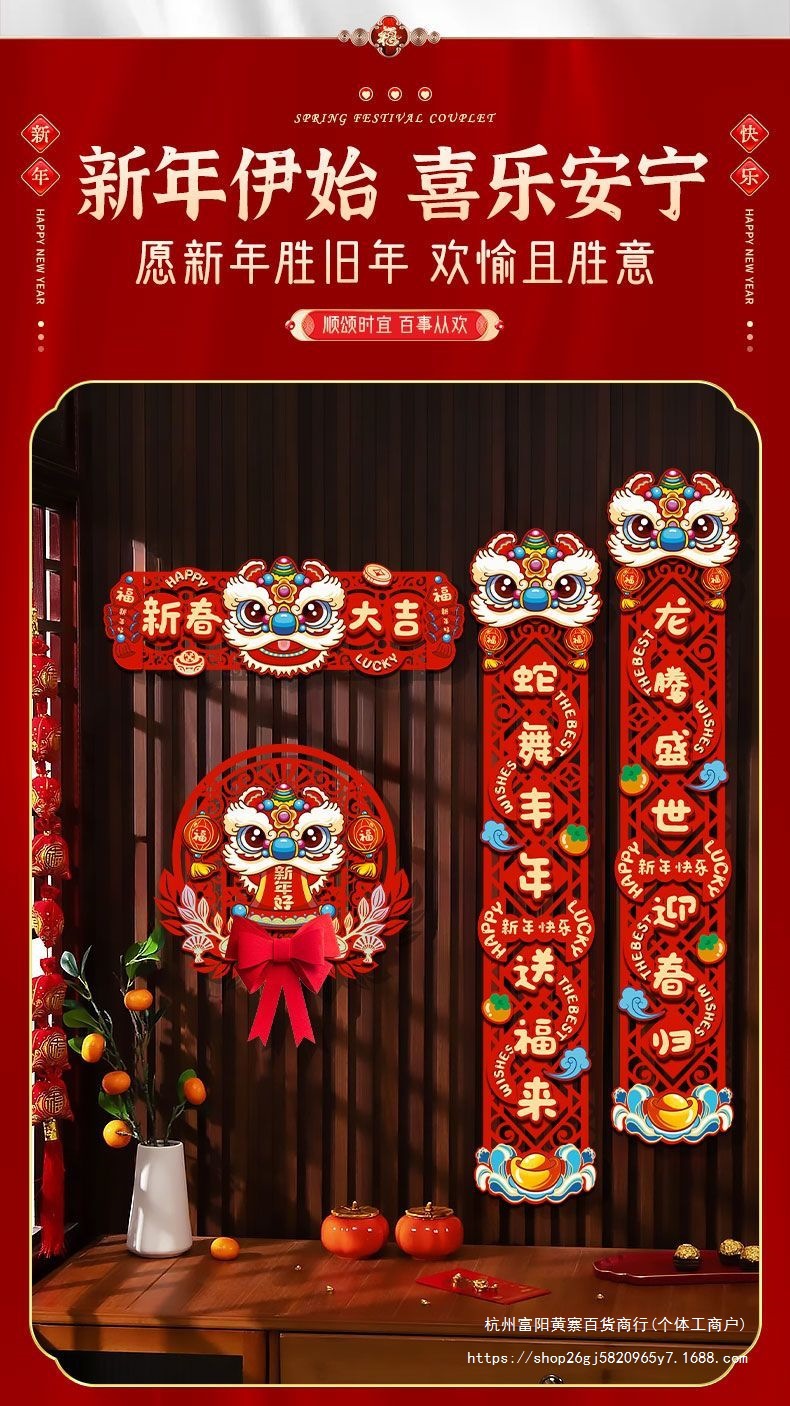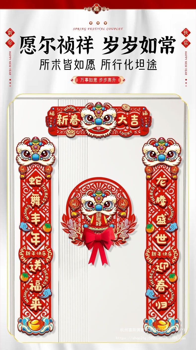 FX2025 새로운 봄 축제 마그네틱 커플 레이아웃 새해 장식 봄 축제 커플 새해 문 홈 도어 스티커 행운의 캐릭터스토어 가기