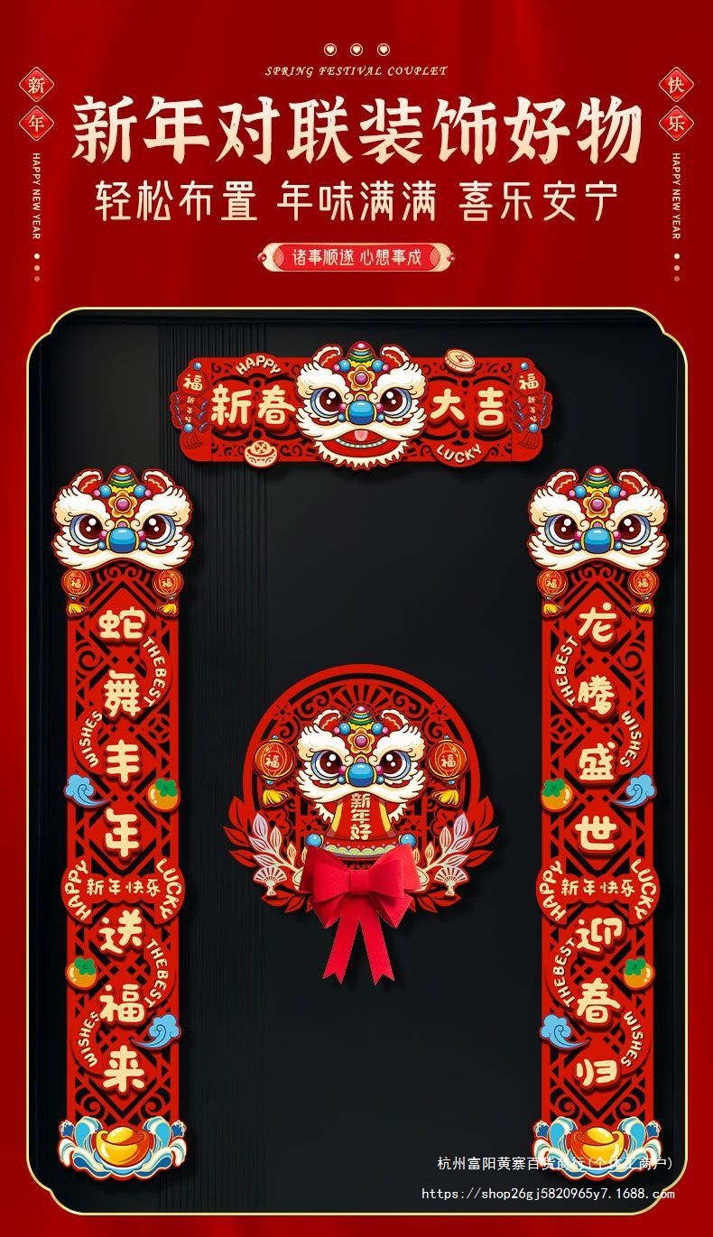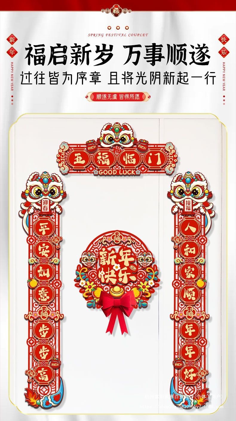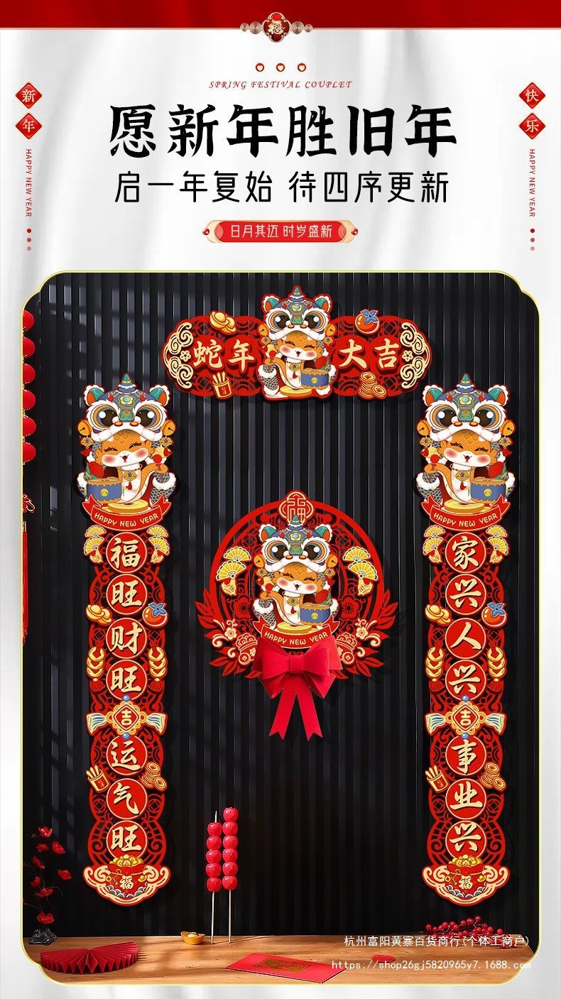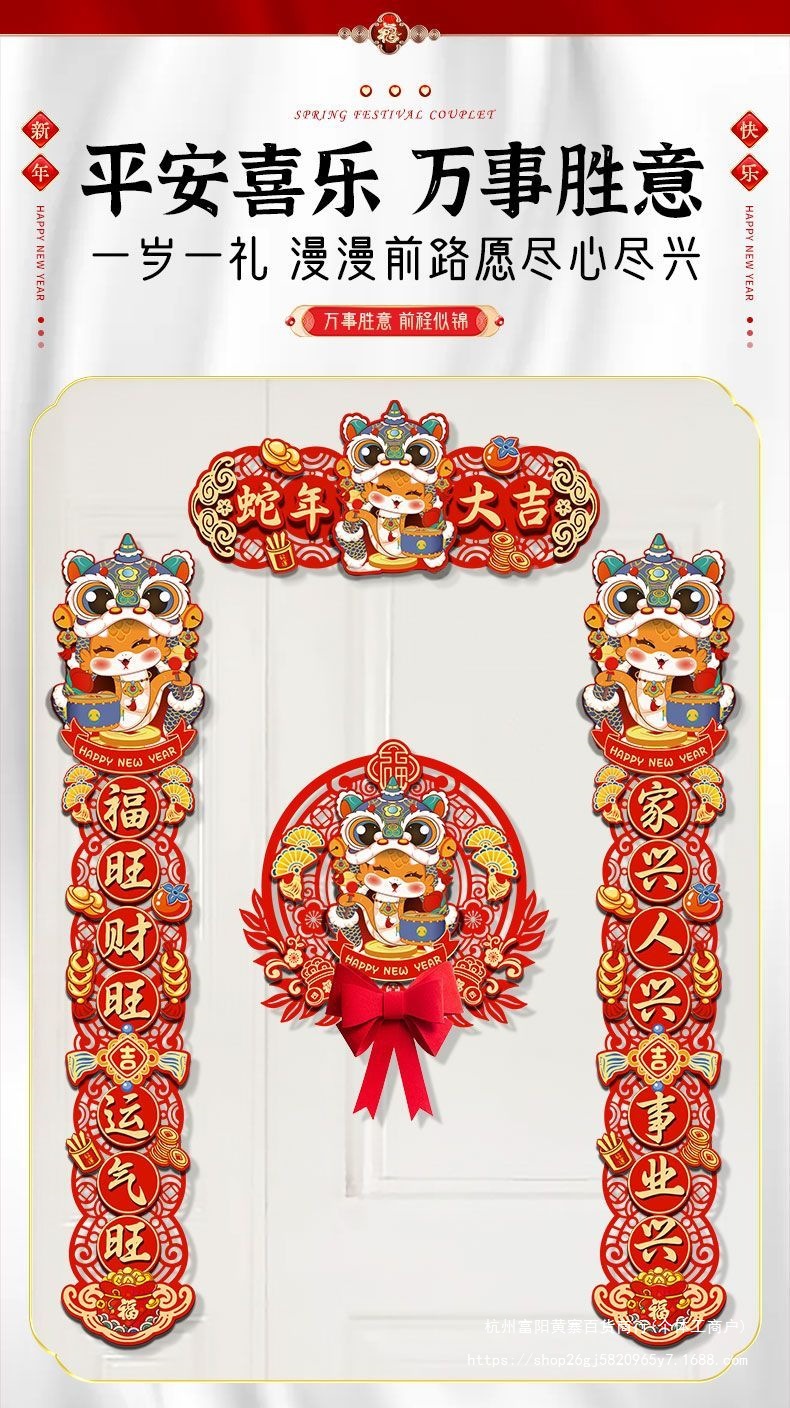 FX2025 새로운 봄 축제 마그네틱 커플 레이아웃 새해 장식 봄 축제 커플 새해 문 홈 도어 스티커 행운의 캐릭터스토어 가기