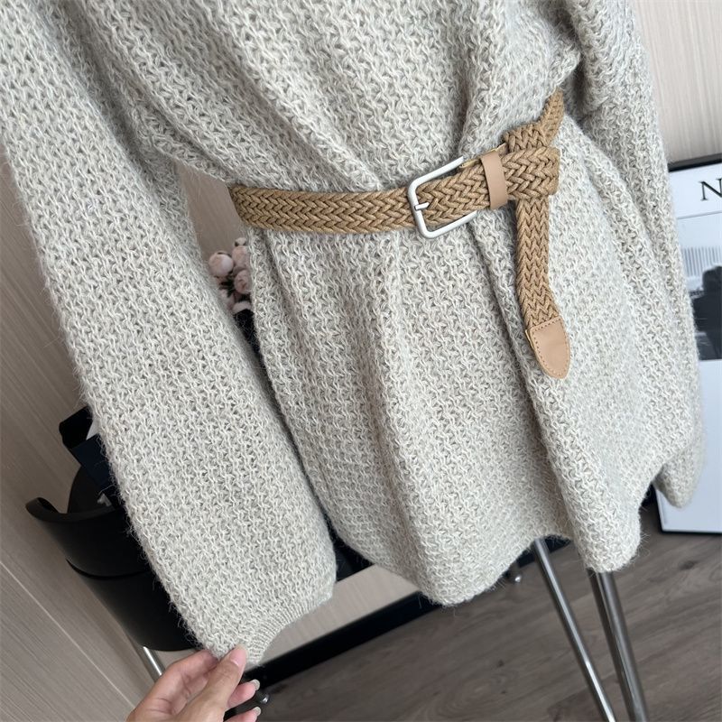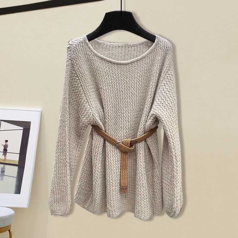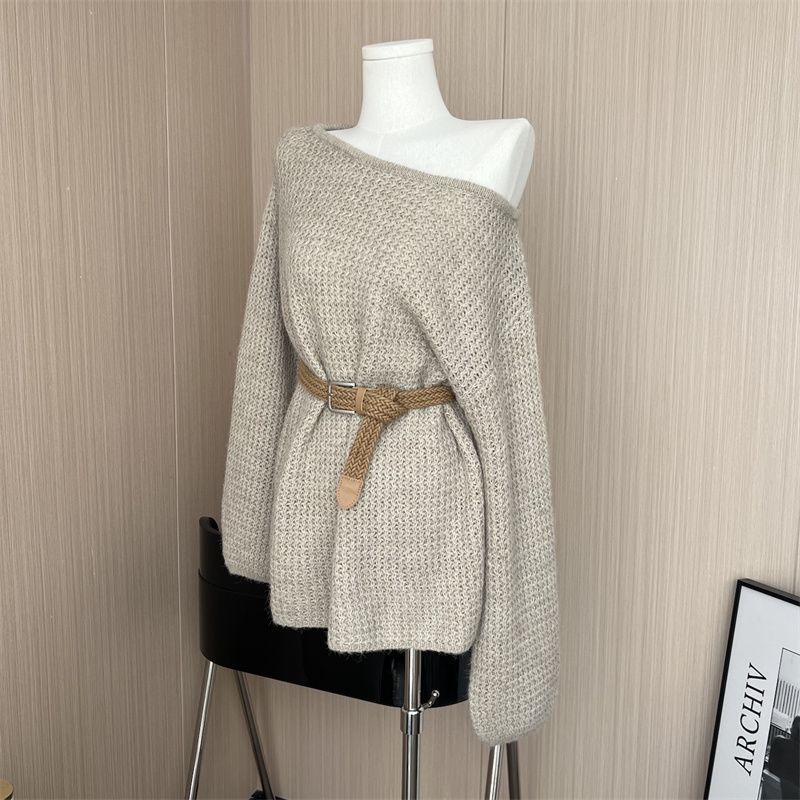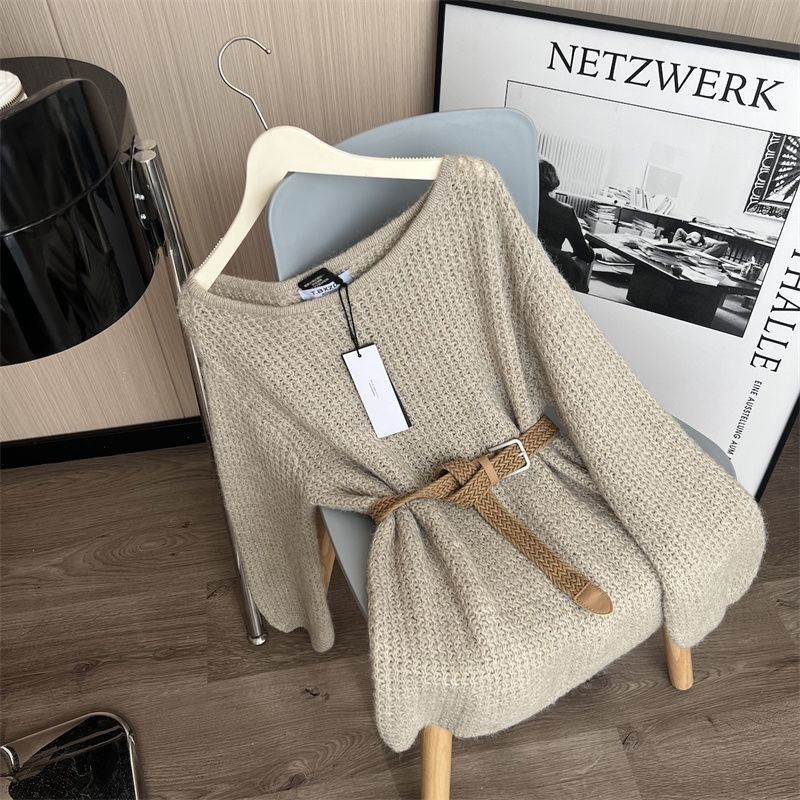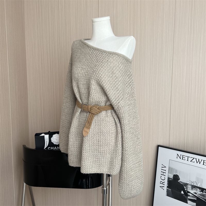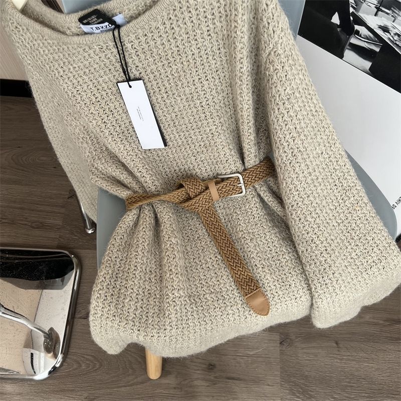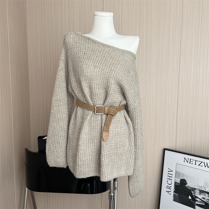 올해 인기있는 여성 2024 가을과 겨울 새로운 느슨한 나이 감소 스웨터 하이 허리 데님 반바지 투피스 세트 세트