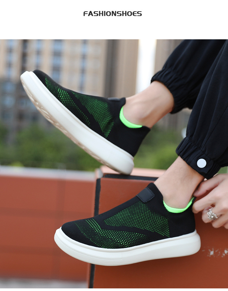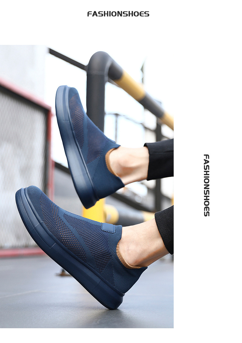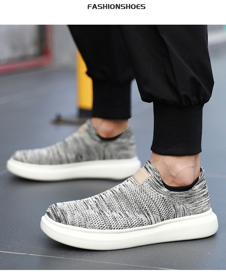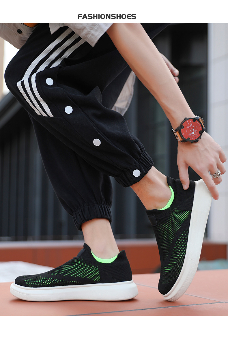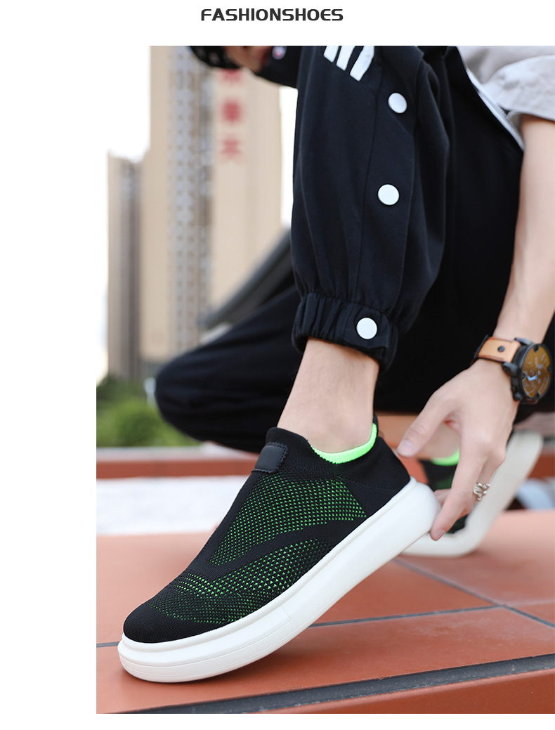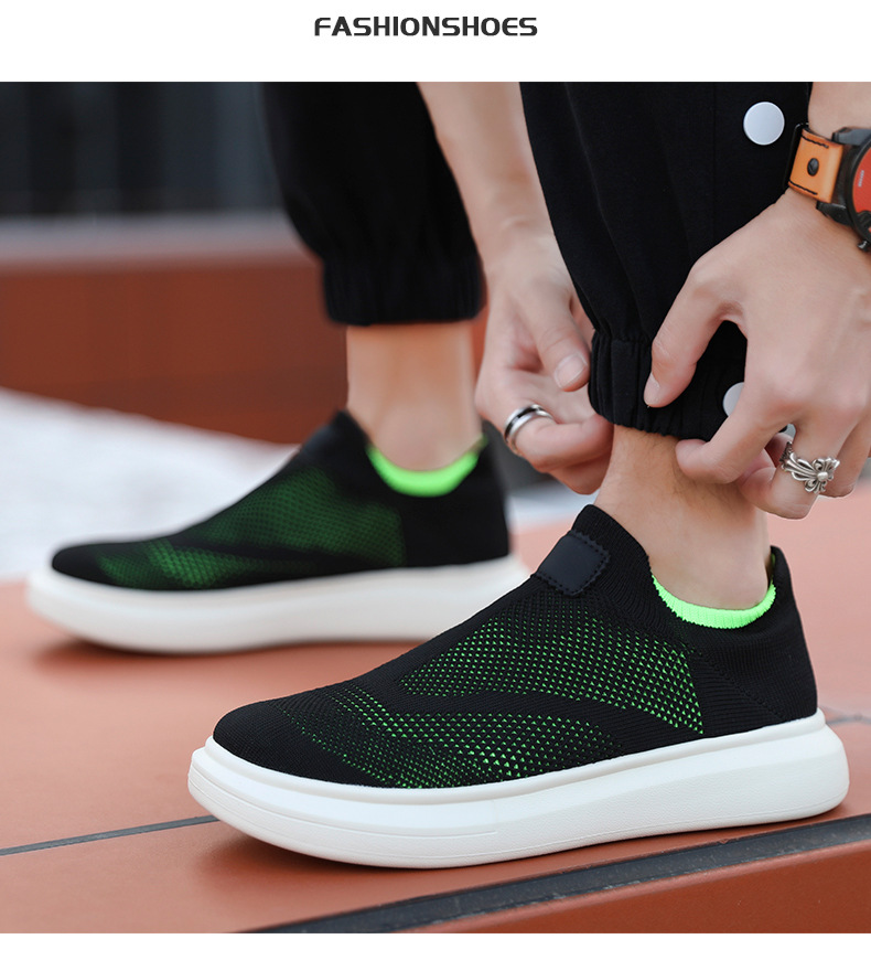 슬립 온 여름 비행 짠 남성 신발 플러스 사이즈 연인 경량 캐주얼 운동화 통기성 게으른 유행 신발 양말 및 신발
