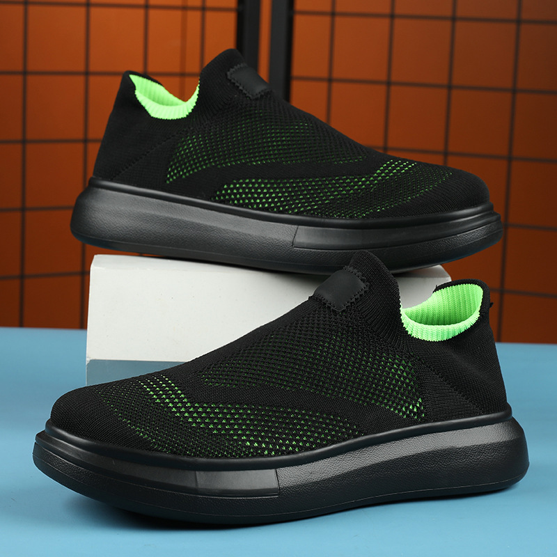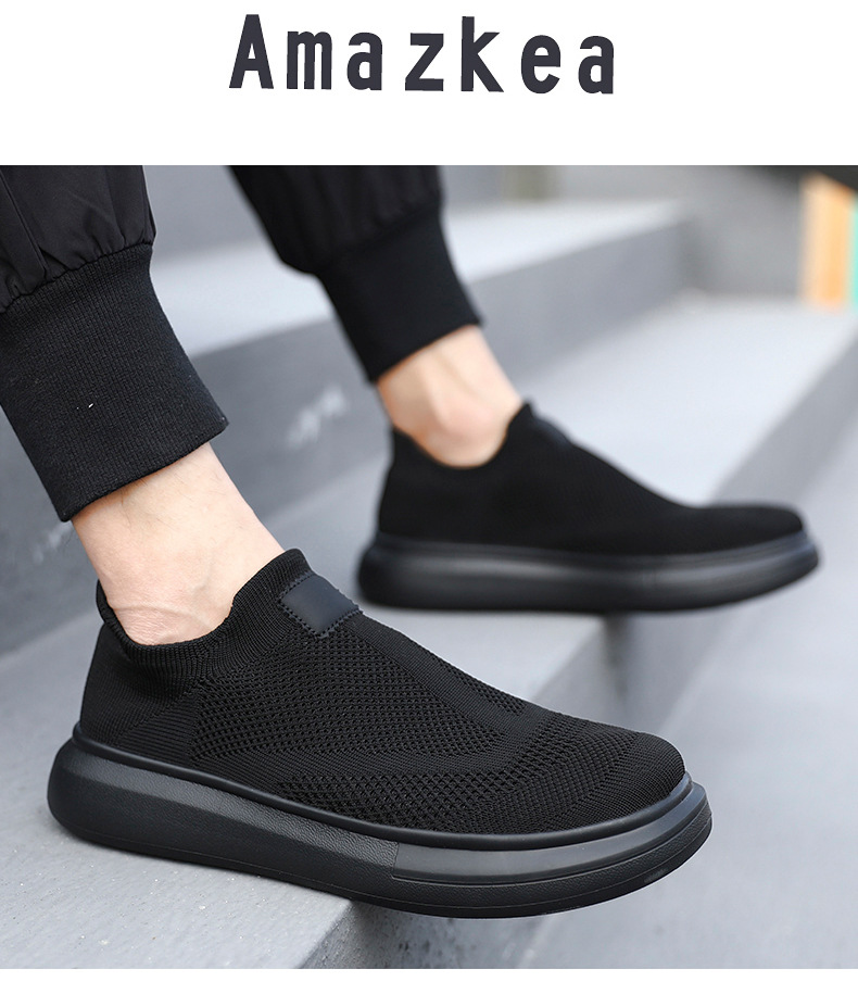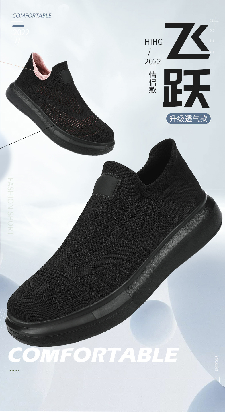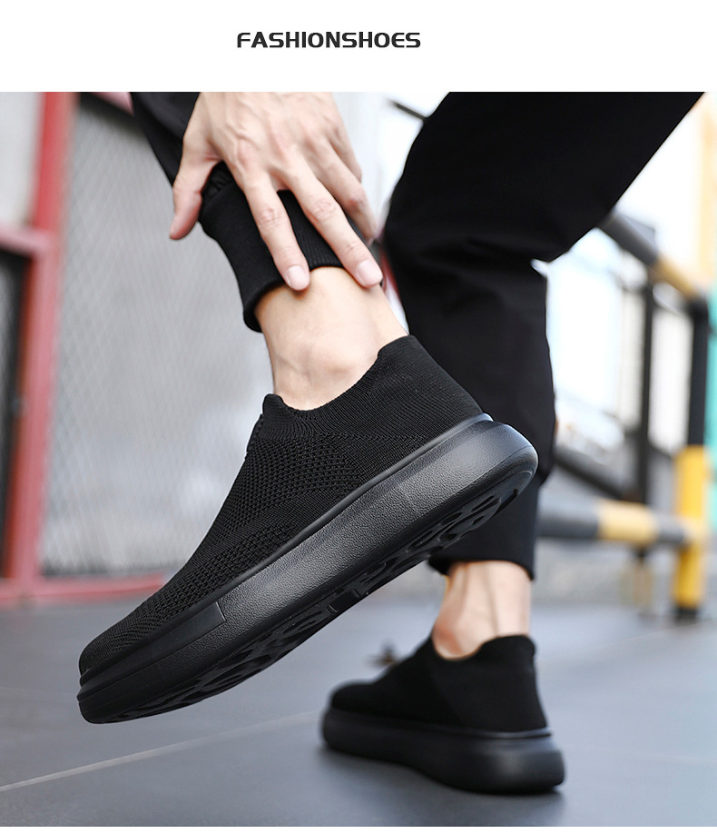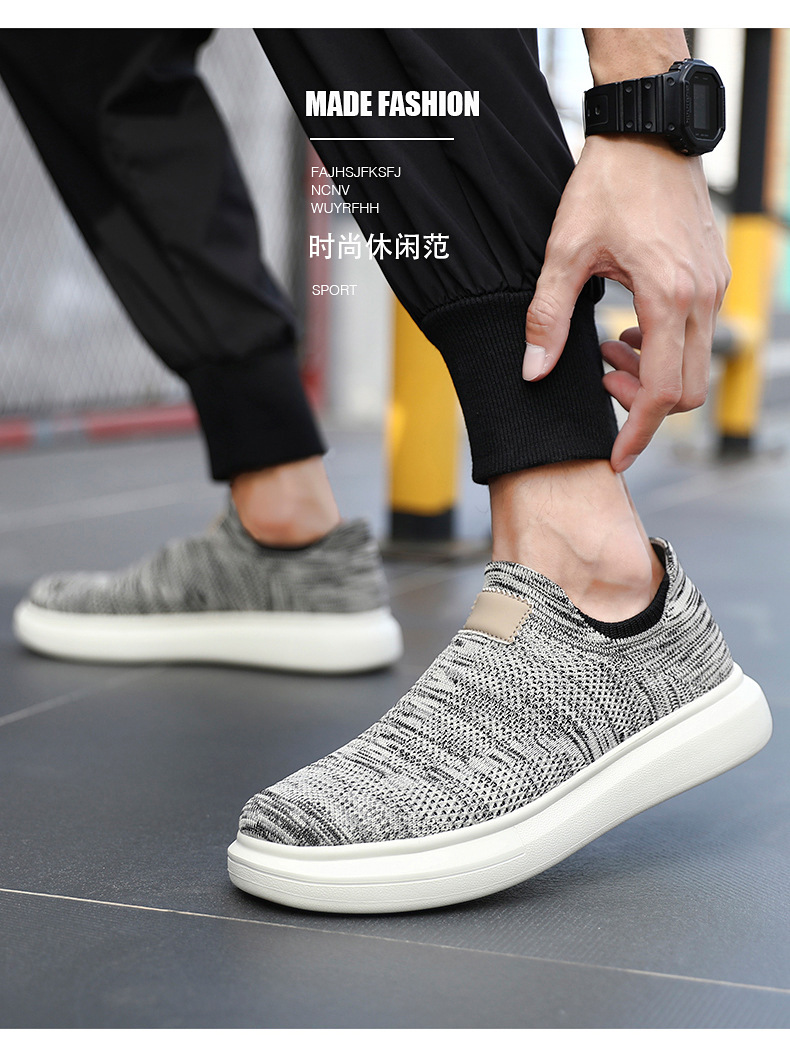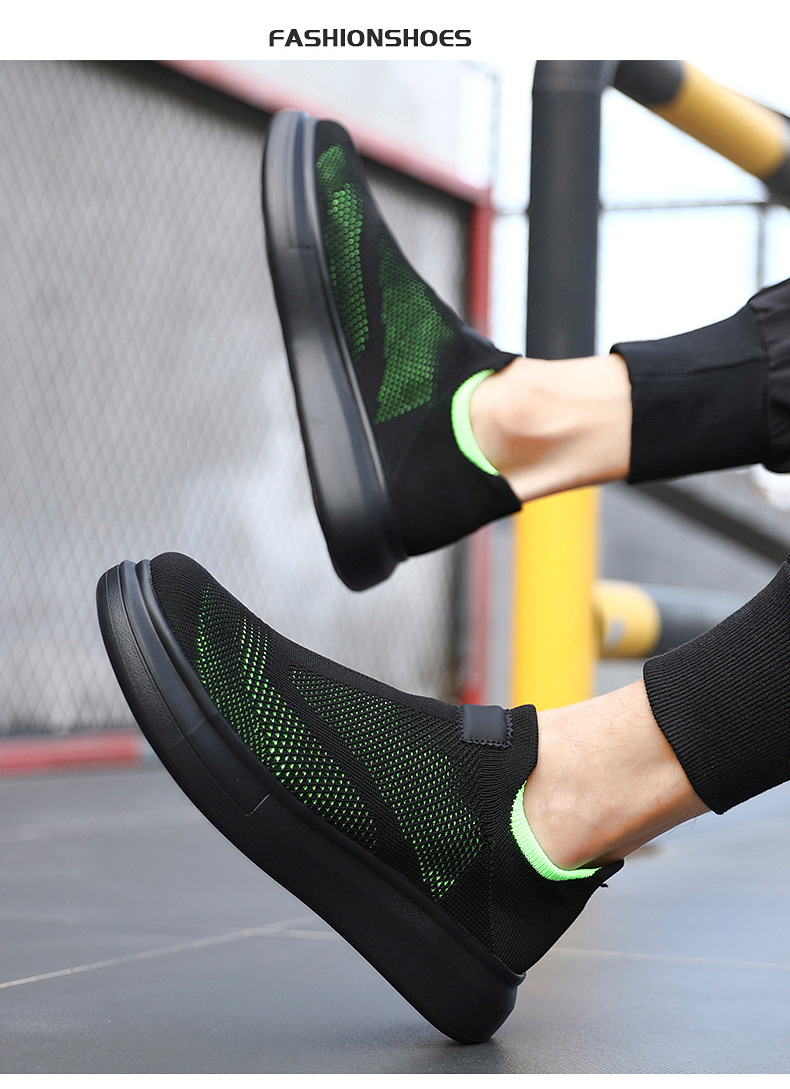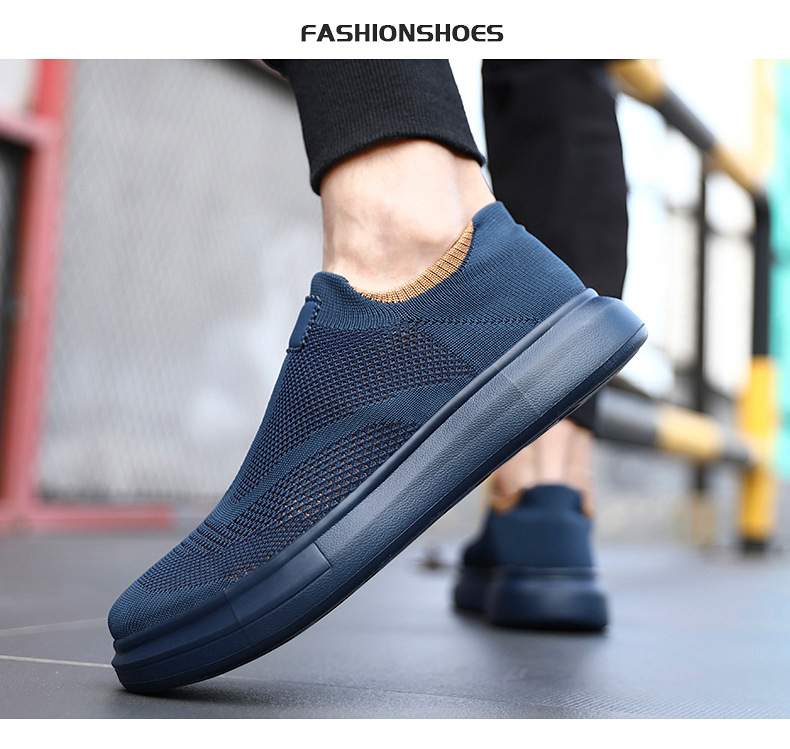 슬립 온 여름 비행 짠 남성 신발 플러스 사이즈 연인 경량 캐주얼 운동화 통기성 게으른 유행 신발 양말 및 신발