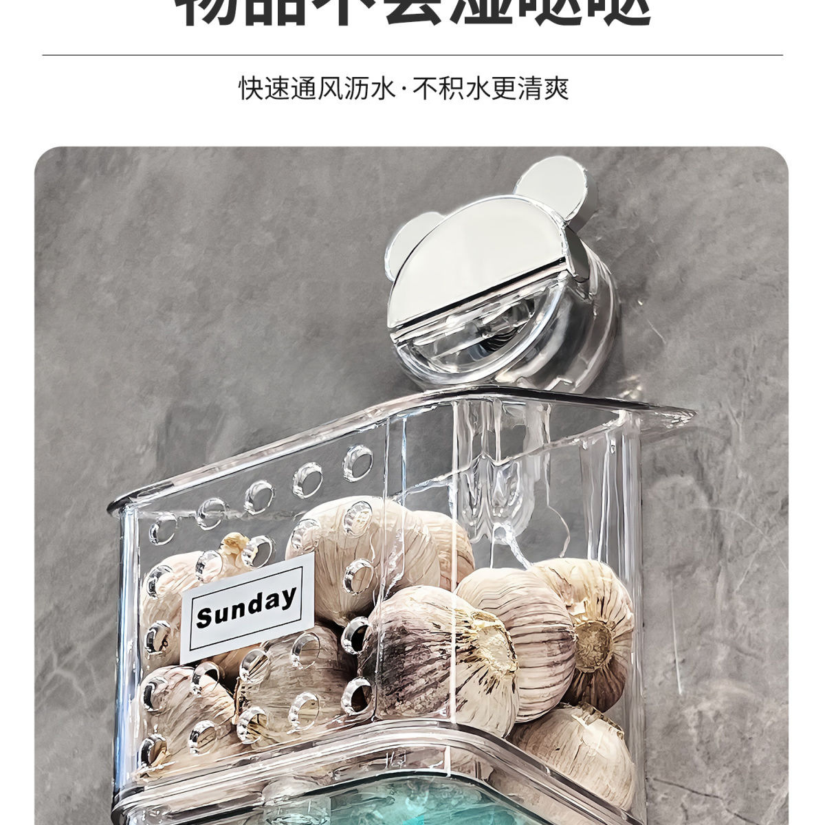 석션 컵 스캘리온, 생강 및 마늘 저장 상자 주방 보관 바구니 벽에 매달린 펀치없는 저장 랙 생강 및 마늘 저장 랙