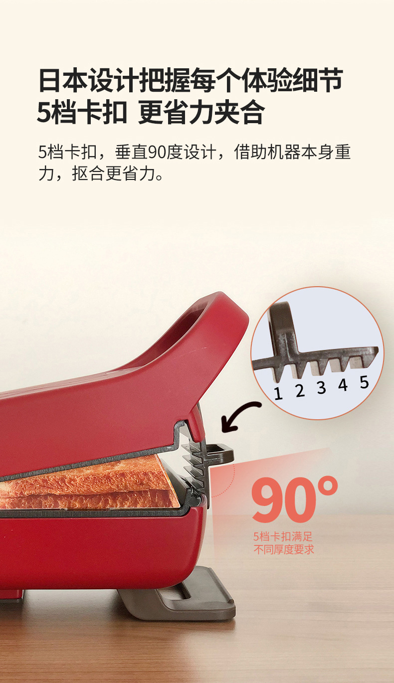 • 5단계 조절 가능한 두꺼운 클립 - 온 가족이 먹을 수 있는 빨간색