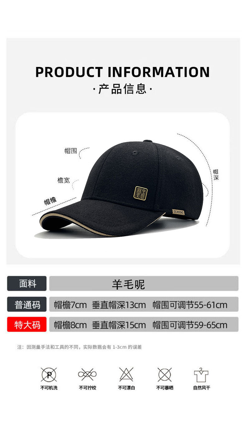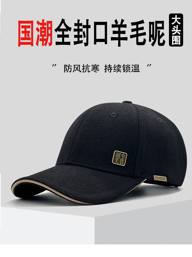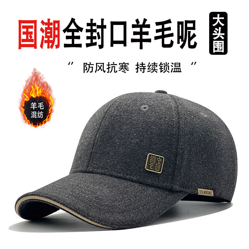 양모 겨울 모자 남자의 새로운 야외 기모 따뜻한 두꺼운 야구 모자 다시 밀봉 큰 머리 모자스토어 가기