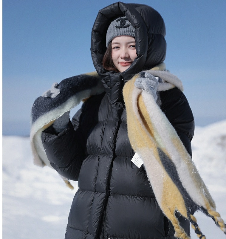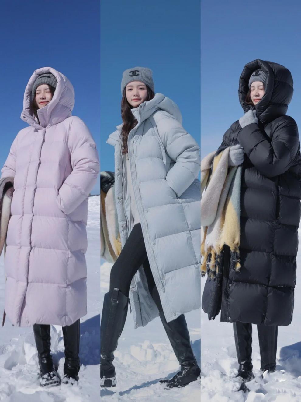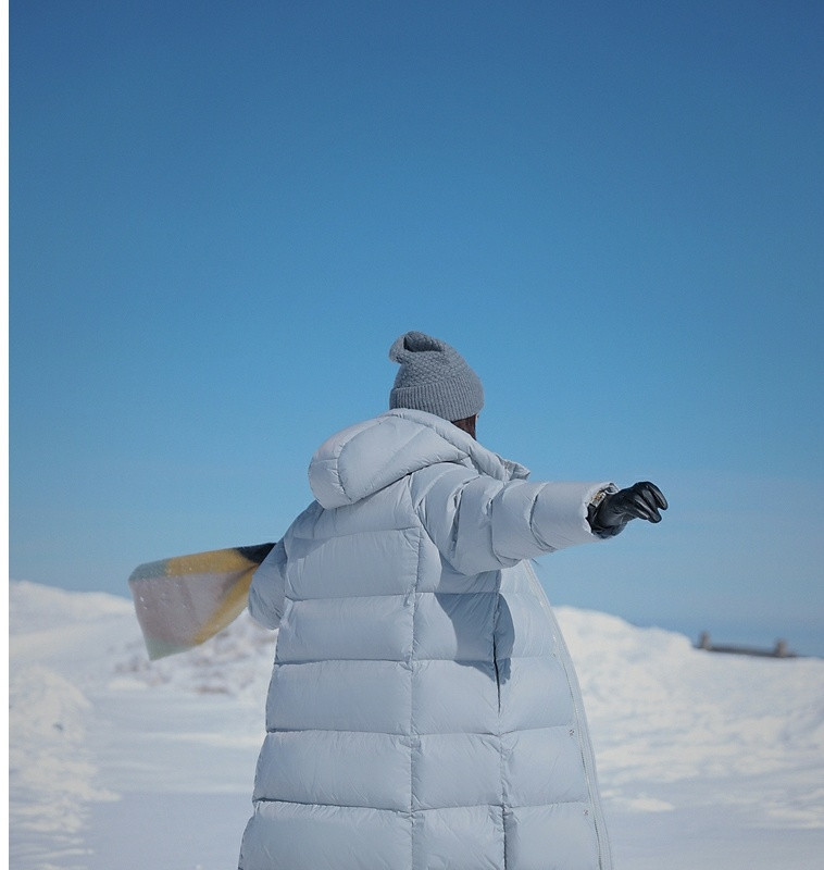매우 차가운 시리즈 패딩 거위 벨벳 340g 높은 충전 벨벳 95 거위 벨벳 후드 무릎 높이 다운 재킷 겨울 여성용 코트스토어 가기