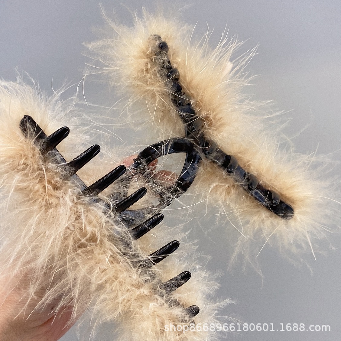 한국 스타일 Ins 스타일 깃털 잡아 고급 헤어 클립 여성 타조 헤어 클립 뒤로 머리 봉제 상어 클립 헤어 클립 헤어 클립스토어 가기