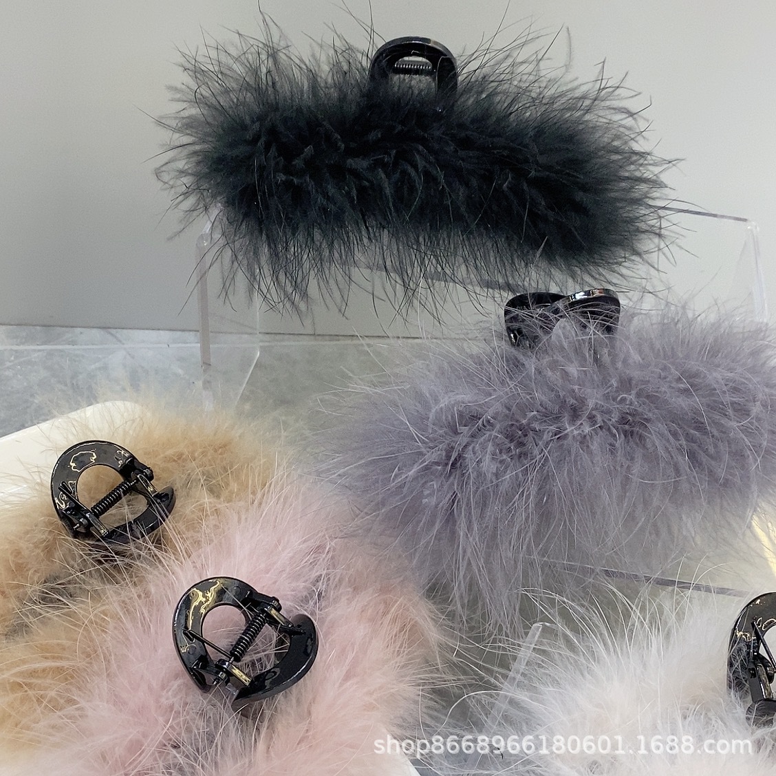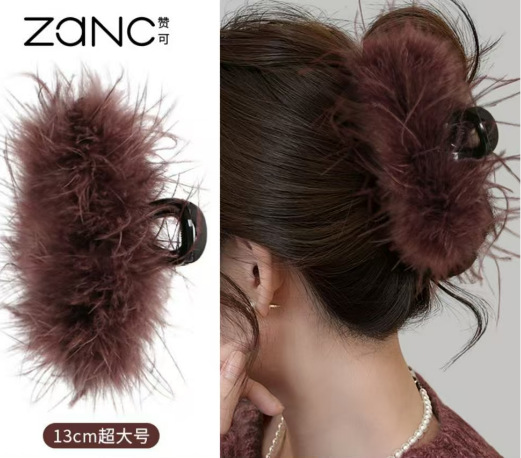 한국 스타일 Ins 스타일 깃털 잡아 고급 헤어 클립 여성 타조 헤어 클립 뒤로 머리 봉제 상어 클립 헤어 클립 헤어 클립