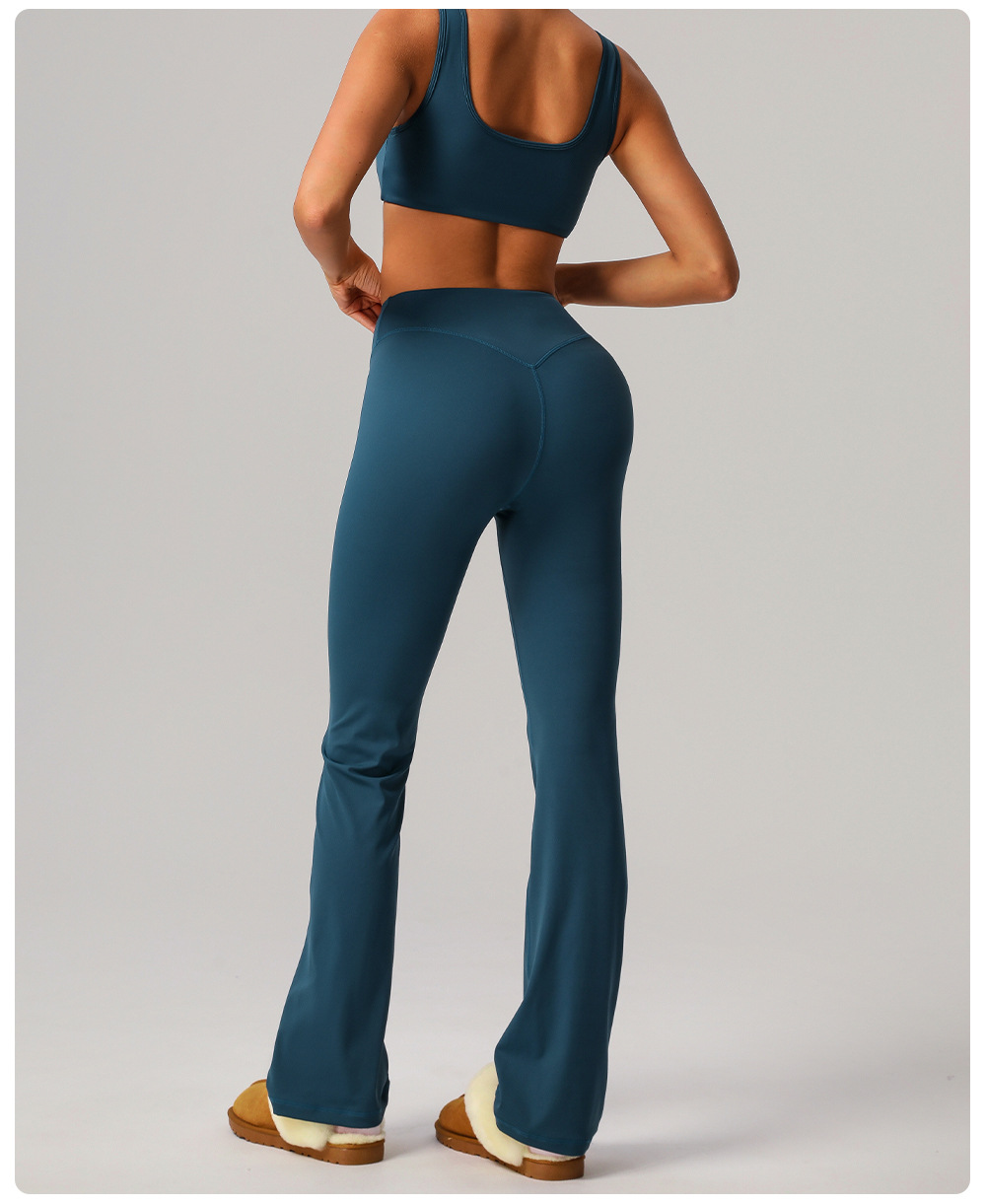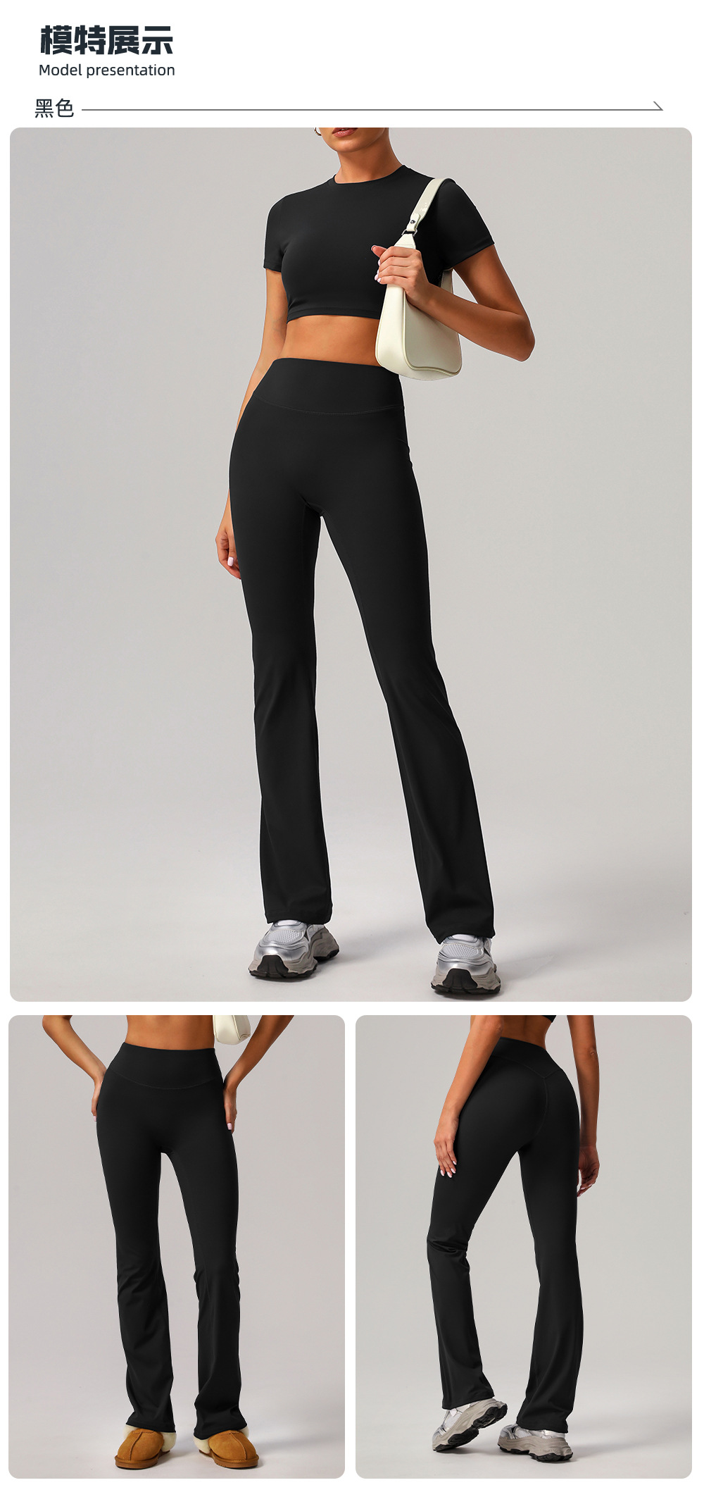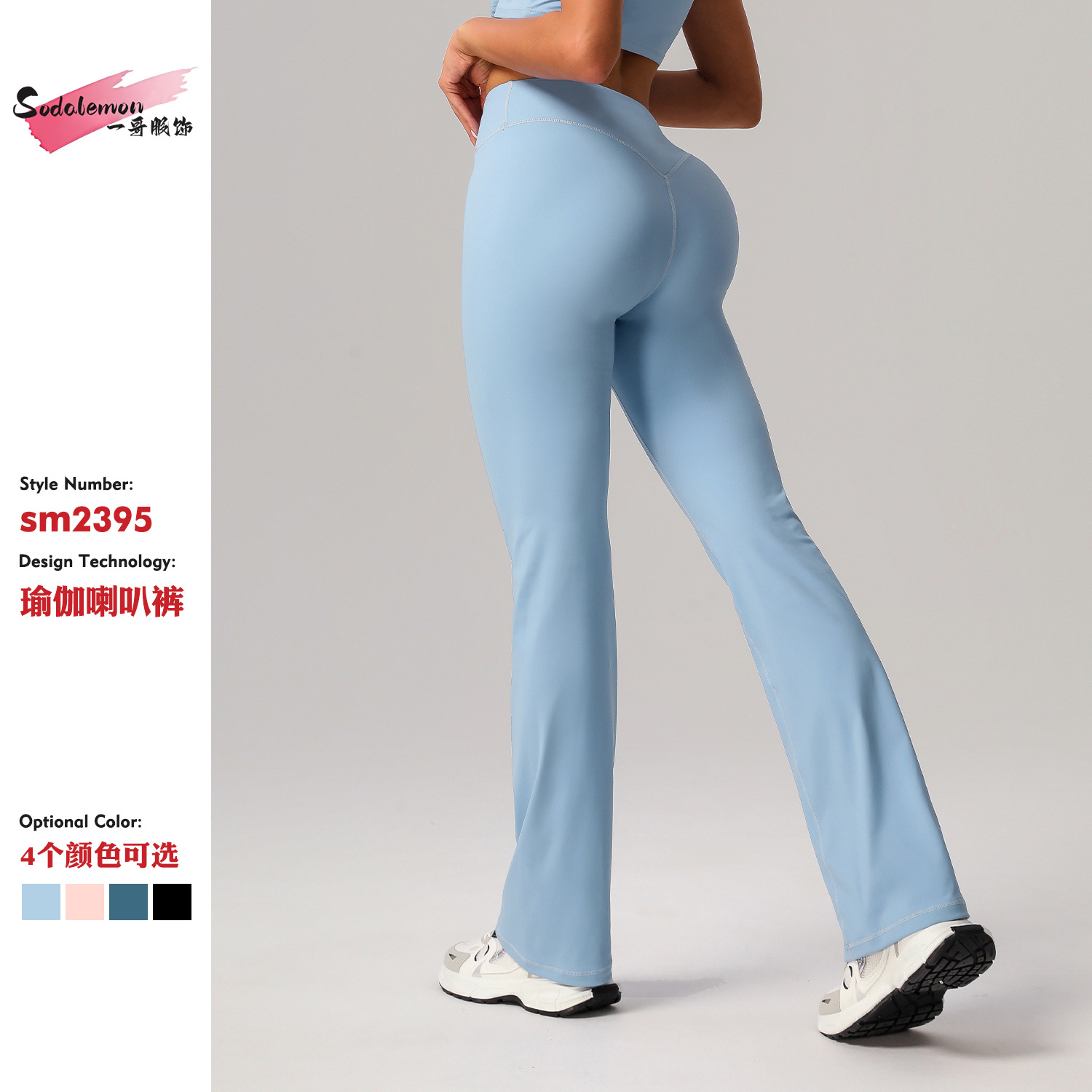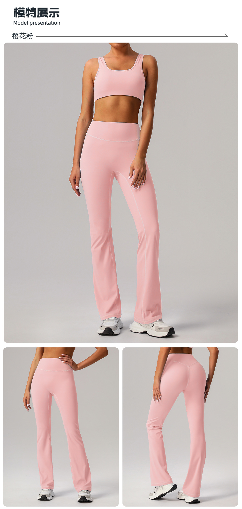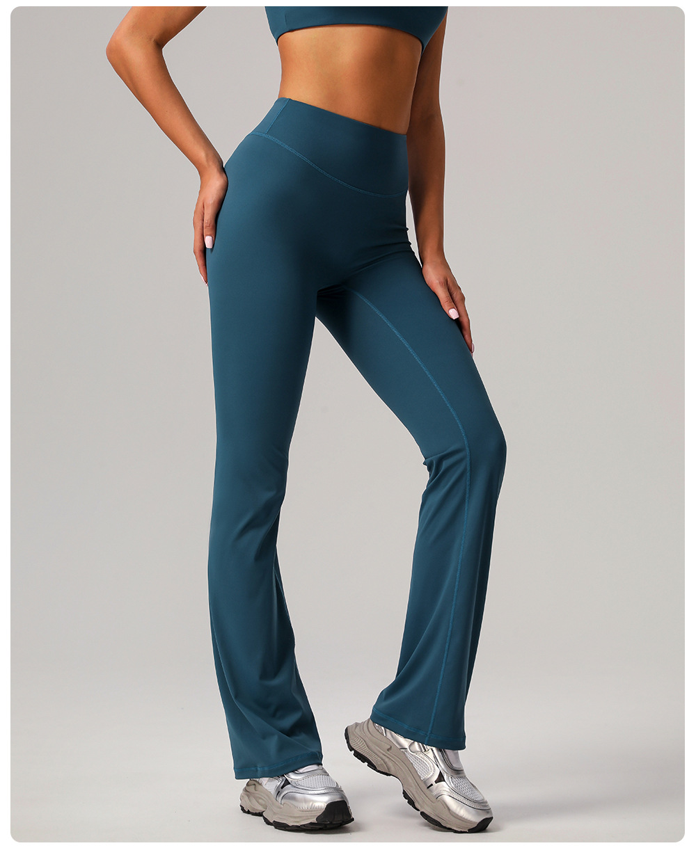 국경 간 새로운 요가 넓은 다리 바지 높은 허리 복부 피트니스 바지 여성용 타이트한 엉덩이 플레어 바지 스포츠 캐주얼 바지