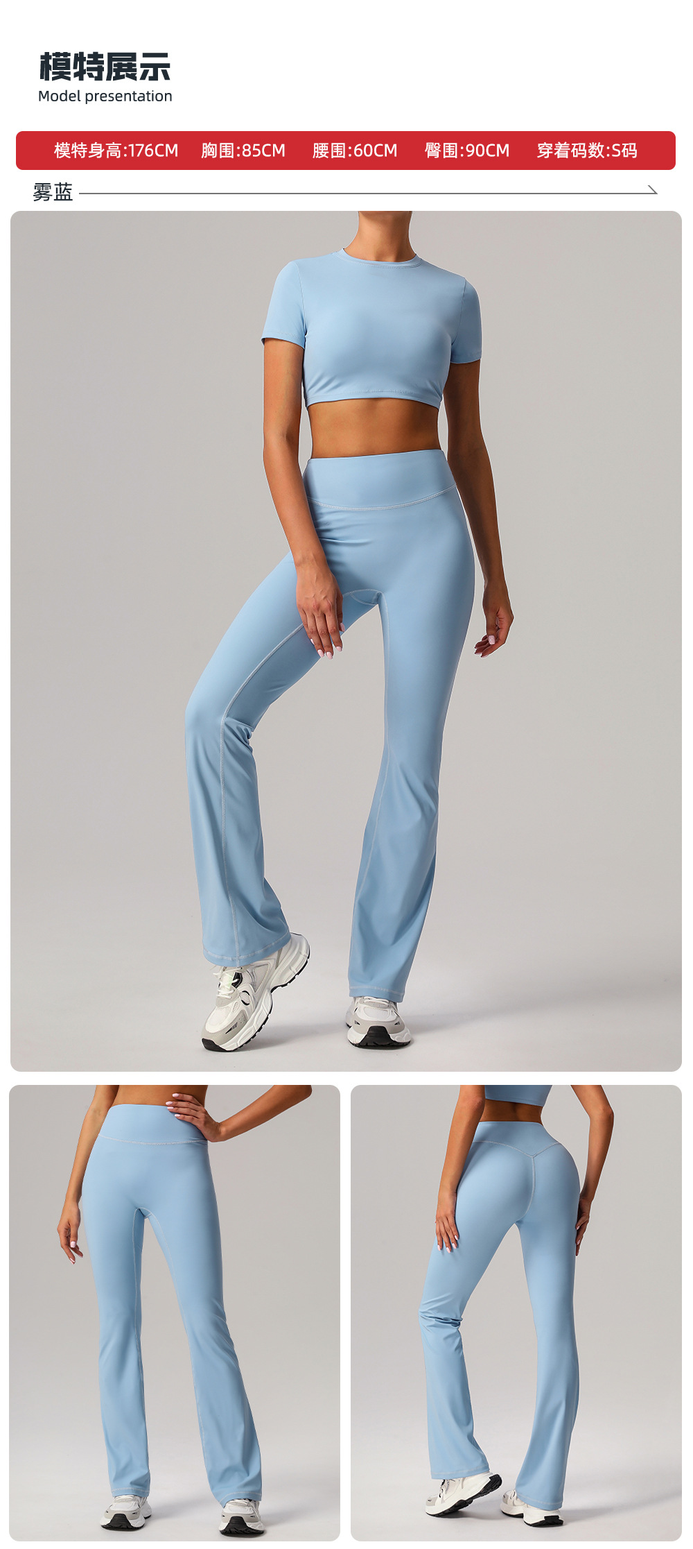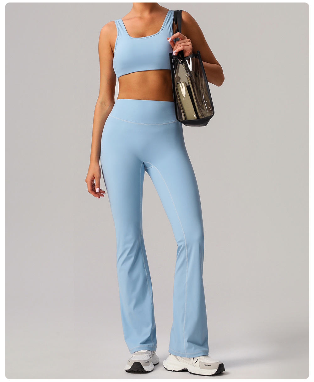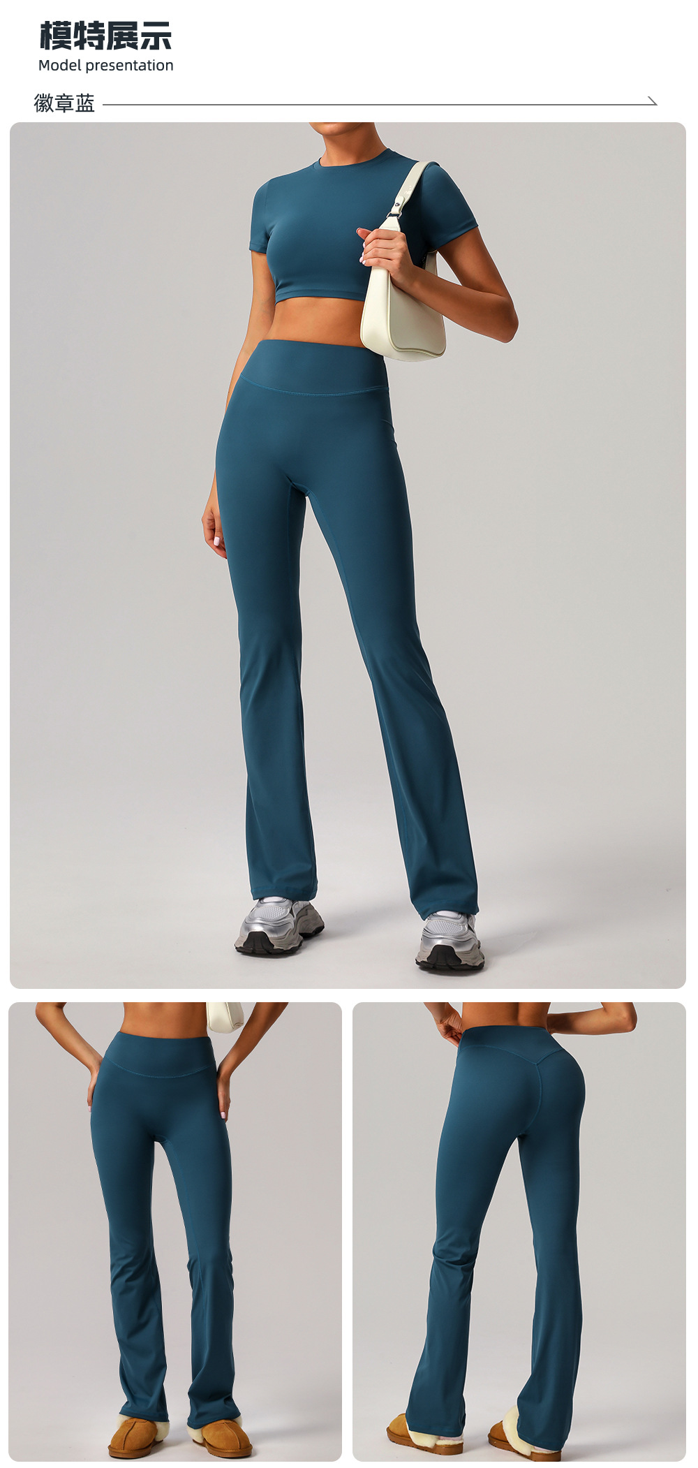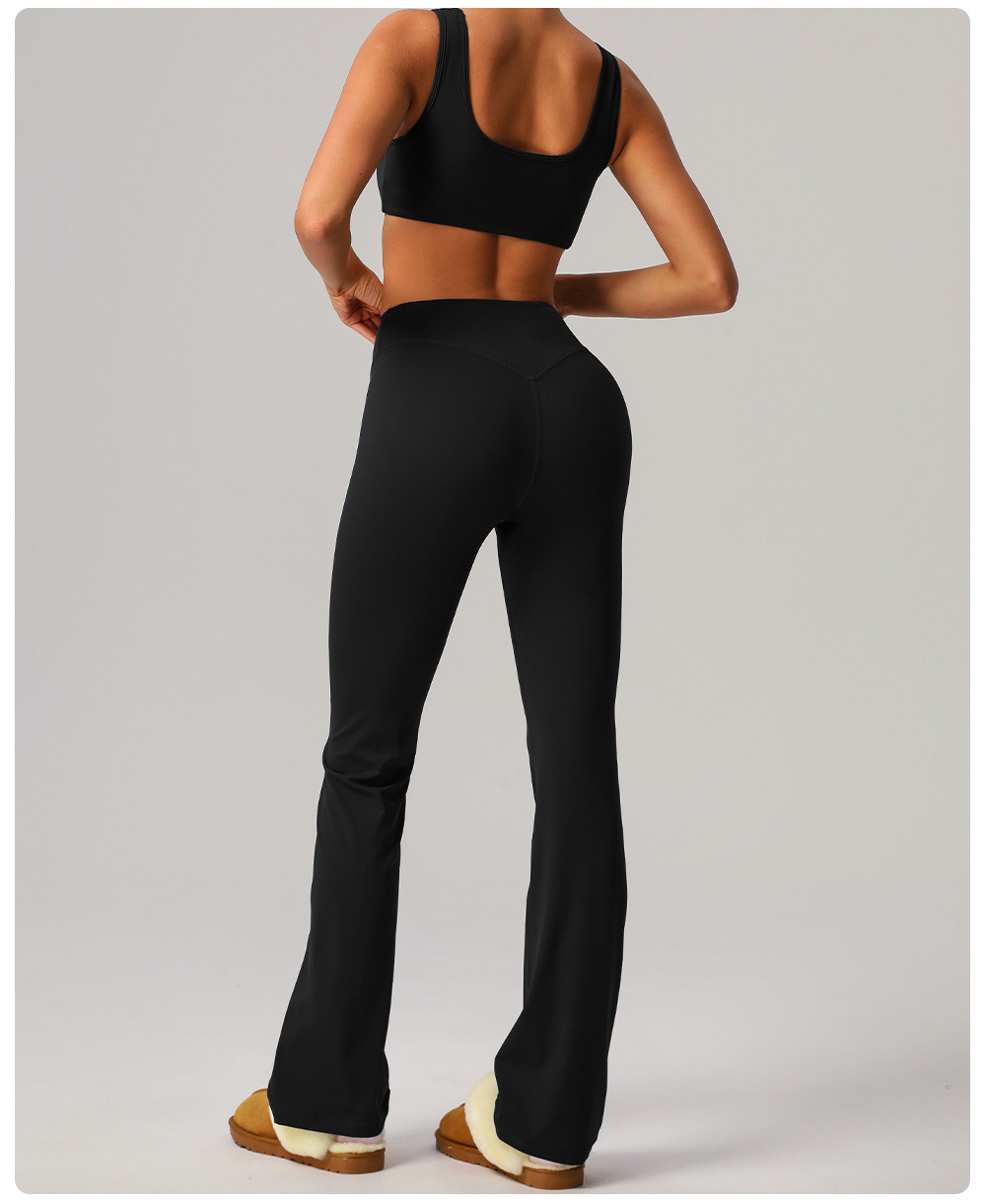 국경 간 새로운 요가 넓은 다리 바지 높은 허리 복부 피트니스 바지 여성용 타이트한 엉덩이 플레어 바지 스포츠 캐주얼 바지