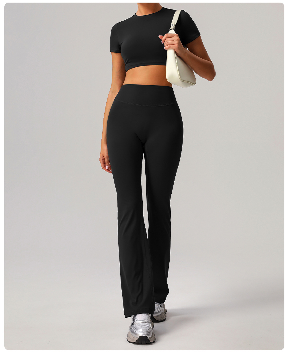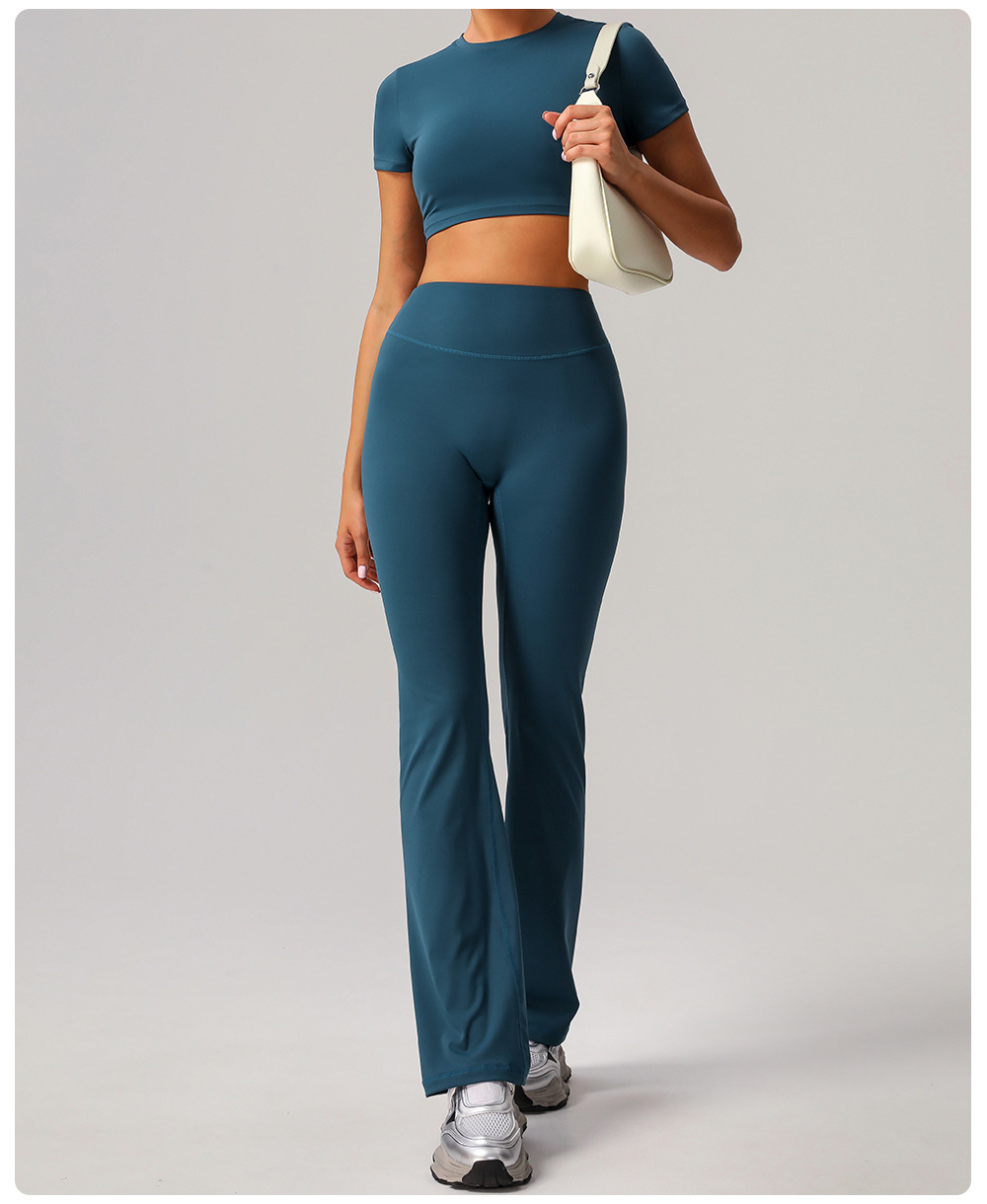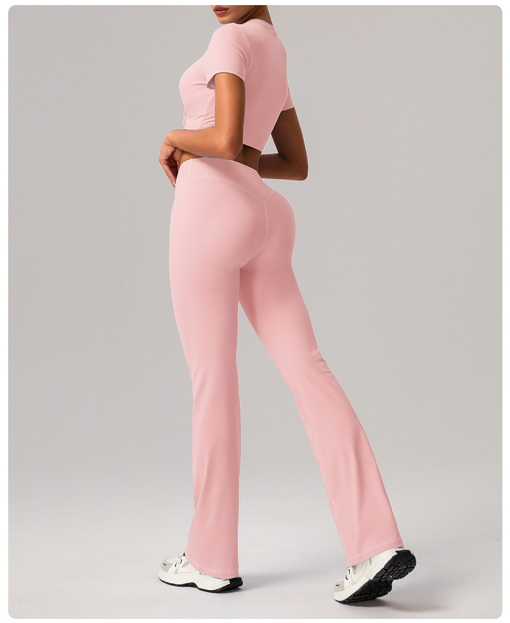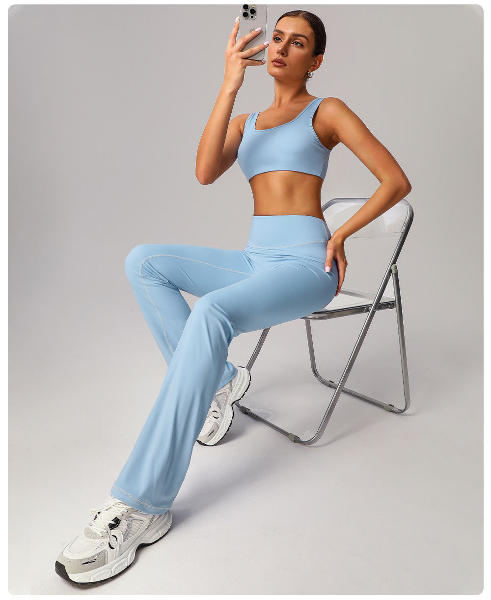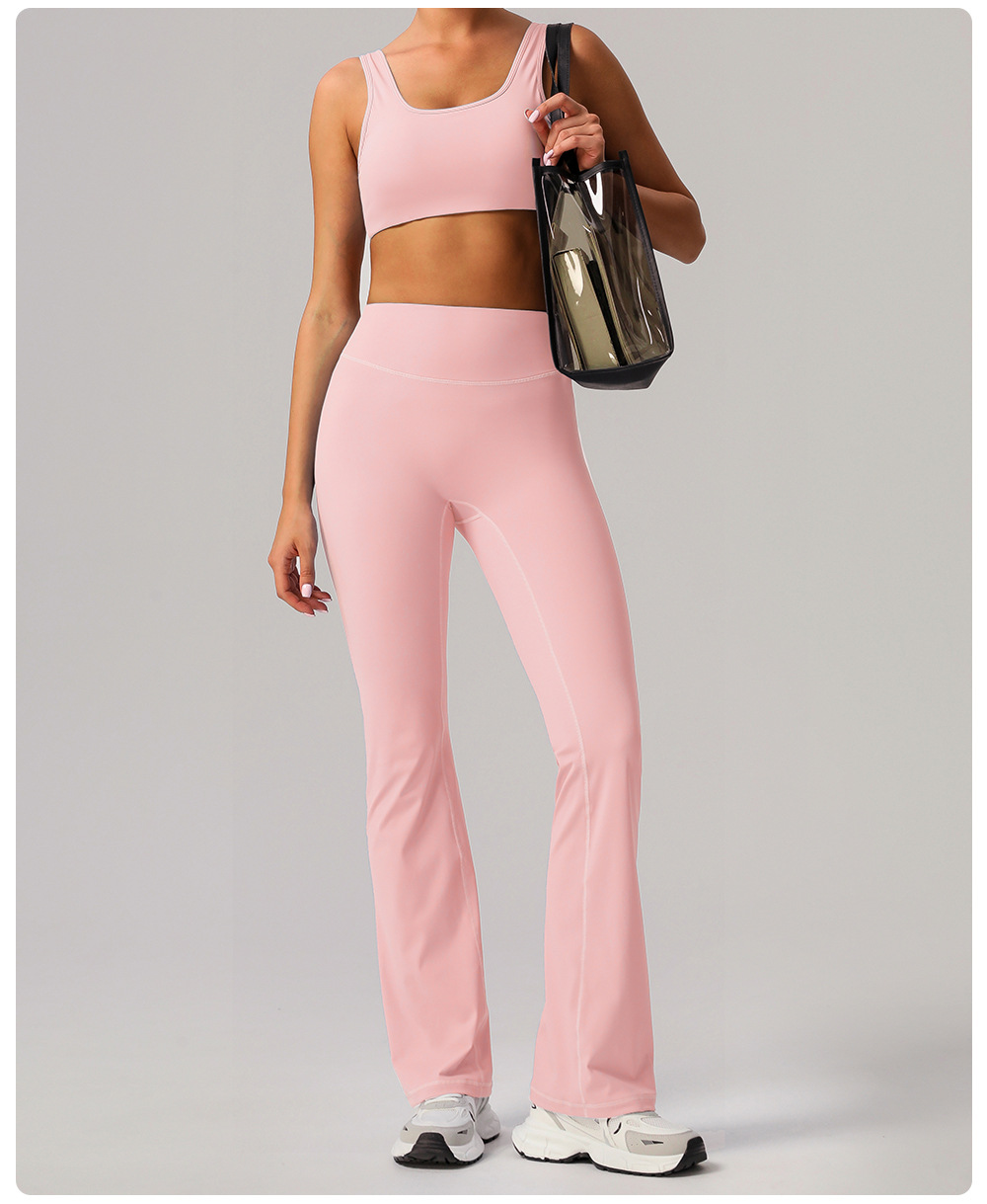 국경 간 새로운 요가 넓은 다리 바지 높은 허리 복부 피트니스 바지 여성용 타이트한 엉덩이 플레어 바지 스포츠 캐주얼 바지